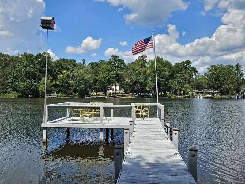 PRICE IMPROVEMENT! Welcome to your serene escape on Lake Marion! This charming 3BR/2.5BA home is nestled near the end of a quiet, no-outlet street, offering peace & solitude. Situated on a fully deeded lot, this property features a private dock perfect for fishing, boating or relaxing on South Carolina's largest lake! Enjoy the spacious, shaded back yard w/ a retaining wall near the water's edge, creating a perfect place to build a sandy beach if desired. The large rear screened porch & patio area provides a relaxing spot to enjoy the morning sunrises, stunning waterfront views or lazy afternoons. Inside the home, you'll find creative touches & country accents that make this home truly unique. Enjoy things like granite countertops; gas stove; wood burning Fireplace; spacious owner's suite; open concept living spaces & more. Whether you're looking for a weekend getaway or a full-time lakeside lifestyle, this cozy retreat has what you need!