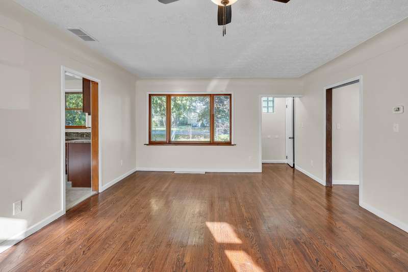 Welcome to this inviting 2-bed, 1-bath ranch-style home offering 1,449 sq ft of comfortable living space. Situated on a generous .77-acre lot, this property features both front and back fenced yards--perfect for pets, play, and privacy. Inside, you'll find a warm and welcoming living room complete with a cozy fireplace and beautiful hardwood floors. Large windows throughout the home provide abundant natural light, enhancing the home's open, airy feel. Ceiling fans in key rooms add comfort and energy efficiency. The well-appointed kitchen opens to a spacious laundry/mud room with direct access to the attached 2-car garage, offering practical convenience for everyday living. Whether you're relaxing on a quiet evening or entertaining friends, this home is full of charm and character in a serene setting. Don't miss this opportunity to own a peaceful retreat