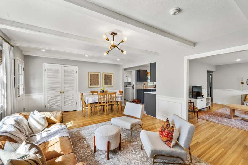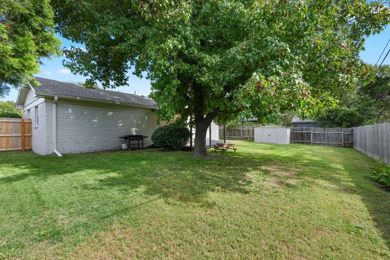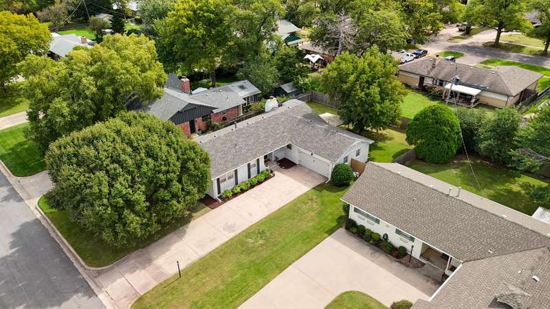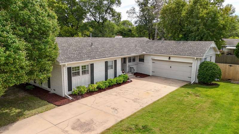 Dont miss this beautifully renovated 3-bedroom ranch in the highly sought-after Pine Valley Estates. Nestled in an established northeast Wichita neighborhood just off N. Woodlawn, youll be minutes from Edgemoor Park, Wichita Country Club, and all your favorite east-side shopping and dining spots. With a brand-new roof installed in May 2025 and a new heating and air system added in August 2022, the big-ticket updates are already donegiving you peace of mind for years to come. From the curb, this full-brick home makes a timeless first impression with its freshly painted brick, manicured landscaping, classic shutters, and a deep driveway that sets the garage back from the street. Step inside to a welcoming tile entryway with a coat closet before moving into the spacious front living room. Here youll find natural hardwood floors, recessed lighting, rich two-tone walls with chair rail trim, and plenty of natural light. A second living space sits just beyond, featuring more hardwood floors, a striking full-brick fireplace with built-in cabinetry and open shelving on either side, painted ceiling beams, and an open dining area. A nearby storage closet provides the perfect spot for pantry overflow, games, or seasonal items. The kitchen is a showstopper with updated cabinetry, quartz countertops, a custom tile backsplash, a large single-bowl stainless steel sink, stainless appliances, and elegant bronze fixtures. Two windows above the sink overlook the front entryway, filling the space with light and a pleasant view. Off the kitchen, youll find a convenient laundry area leading to the attached two-car garage, plus a full hall bath with a walk-in shower. On the opposite side of the home, the bedroom wing features three spacious rooms with hardwood floors, charming louvered closet doors, and ample natural light. The stylish hall bathroom includes tile flooring, a custom dual-sink vanity, and a tub/shower combo with tiled surround. The front bedroom is extra special with decorative wainscoting, an accent wall, and a walk-in closet space with floor-to-ceiling built-ins and a separate closet space with French doors. Step out back to enjoy the covered deck, a fully fenced yard shaded by mature trees, and a storage shed for tools and toys. This home checks all the boxes: prime location, smart updates, and move-in-ready condition. Schedule your private tour today and make it yours!