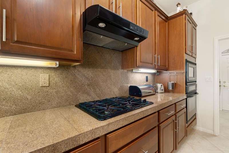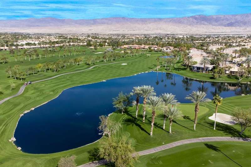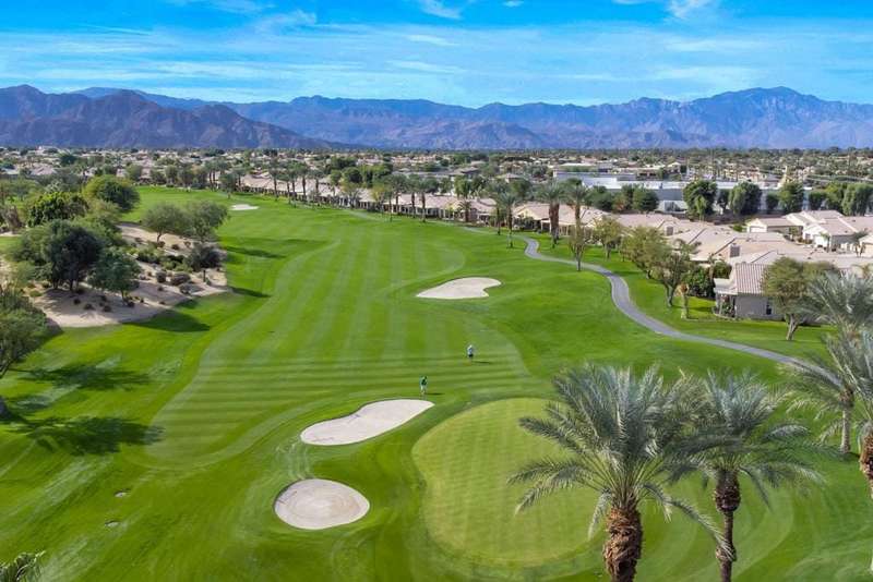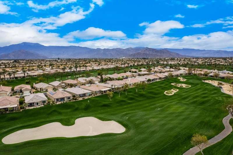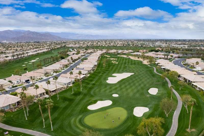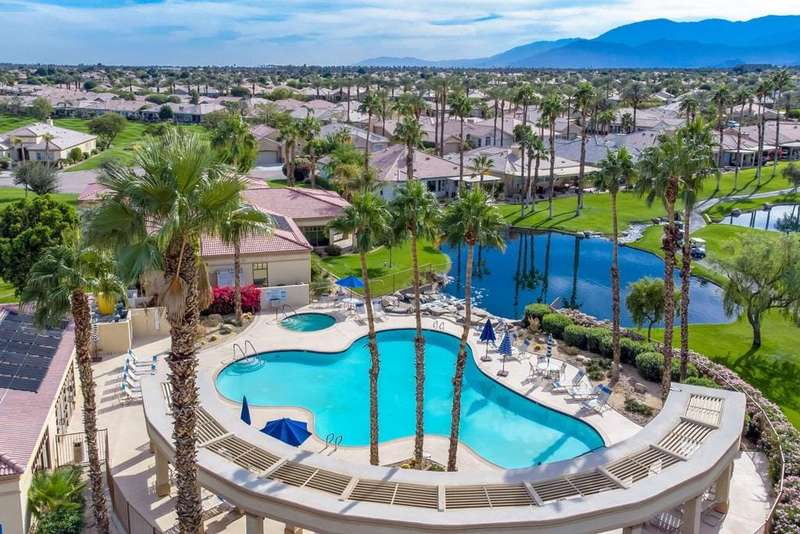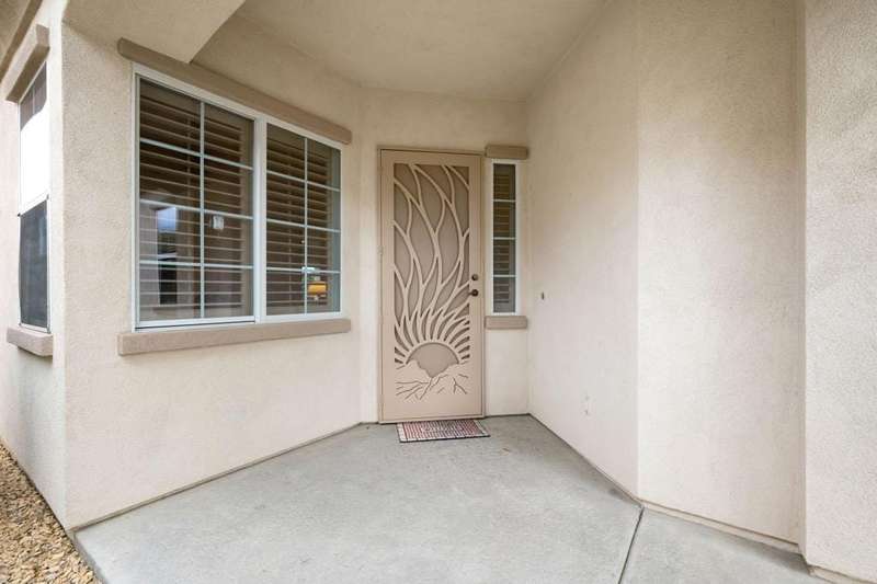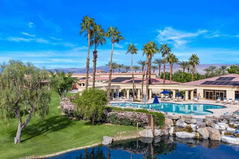 Step into an open floorplan featuring a dining area and a spacious living room with built-in shelves. The high ceilings and recessed lighting enhance the ambiance throughout the space. The kitchen is equipped with granite countertops, a gas stovetop, and ample cabinetry, overlooking both the living room and picturesque views of the golf course. This home offers two bedrooms, two bathrooms, and a den/office. The primary bedroom provides access to the back patio and features golf course views. The primary bathroom includes a walk-in closet, soaking tub, and separate sink areas. The laundry room is appointed with front-loading washer and dryer, utility sink, and abundant cabinetry for storage. The covered back patio presents scenic mountain and golf course views. Additional amenities include a two-car garage with generous storage capacity and a separate garage for a golf cart. Heritage Palms is an exclusive 55+ community offering a guard-gated entrance, clubhouse, dining, fitness center, tennis courts, social clubs, and more. Schedule your private showing today!