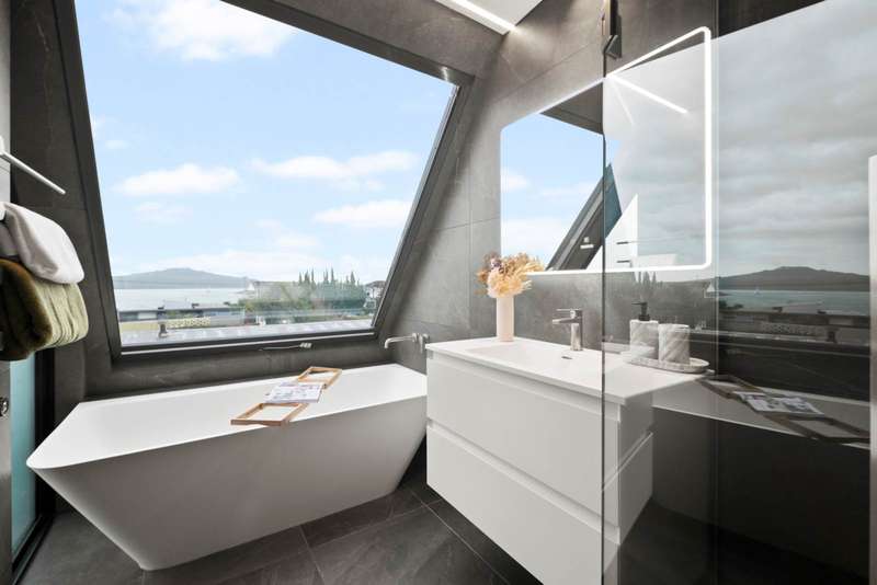 Welcome to Beachside living, a place where nature and architecture coexist. Discover a boutique development of five meticulously crafted premium homes, harmoniously blending nature and architecture to create a truly exclusive sanctuary. Enjoy breathtaking views of Rangitoto Island and the city skyline from this prestigious location. Each of these architecturally designed homes exudes sophistication with a focus on quality design, abundant natural light, and timeless modern finishes. The gourmet kitchen showcases a premium Italy Natural Stone benchtop and Island breakfast bar, perfect for culinary enthusiasts and entertainers alike. Property Features: - Four bedrooms, three bathrooms, separate laundry, and powder room - Standalone three-level design with a lift for convenience - Seamless indoor-outdoor flow to a semi-enclosed deck with mesmerizing sea views/city views - Designer kitchen with a walk-in butler’s Kitchen - Spacious master retreat featuring a walk-in wardrobe and luxurious ensuite - Elegant cobblestone flooring in the entrance area - Full insulation for superior comfort - Premium double-glazing throughout - Samsung digital lock for added security and convenience - Exquisite finishes including natural stone benchtops, Kitchen Island, and fully tiled bathrooms - Just a 2-minute drive to Narrow Neck Beach and Waitemata Golf Club - Walking distance to top schools such as Belmont Primary, Belmont Intermediate, and Takapuna Grammar Situated in a highly sought-after location with proximity to pristine beaches, top-rated schools, local amenities, and convenient transport links, this home offers the perfect blend of luxury and lifestyle. Whether you seek a peaceful retreat or a vibrant hub for entertainment, this property caters to all your needs. Don't miss the chance to experience the epitome of North Shore living. Visit us today and witness the unparalleled charm and elegance this residence has to offer. Your dream home awaits.