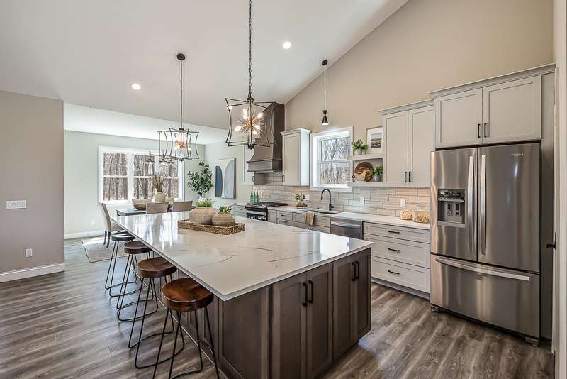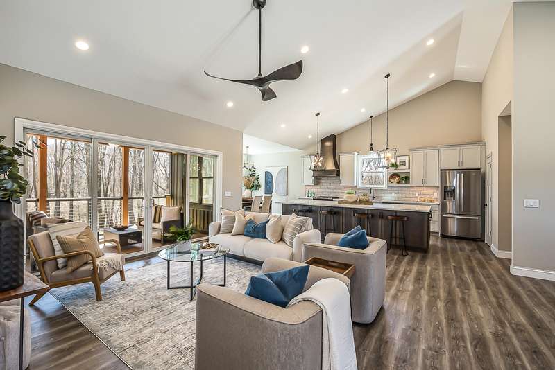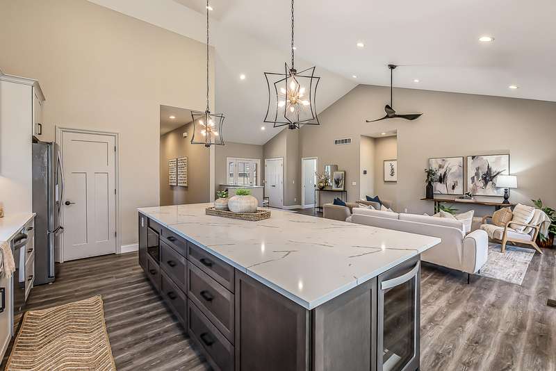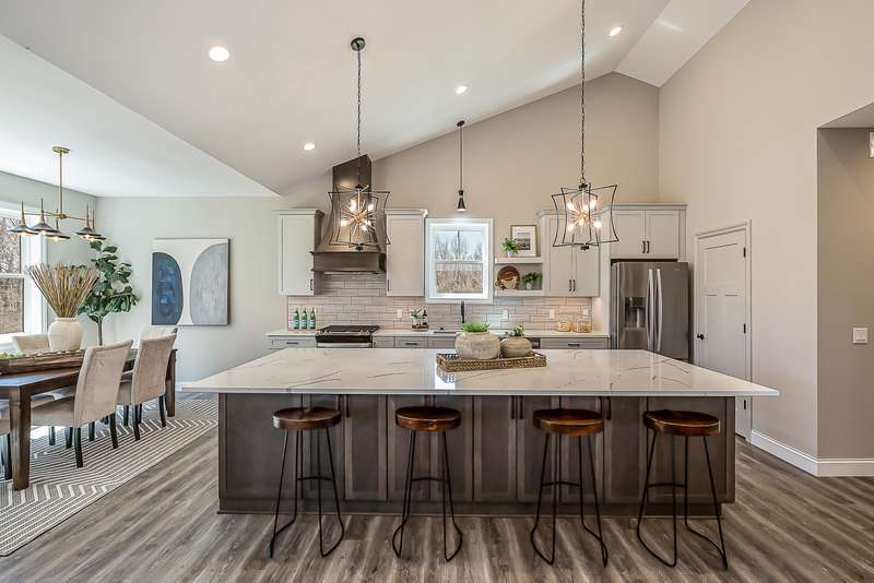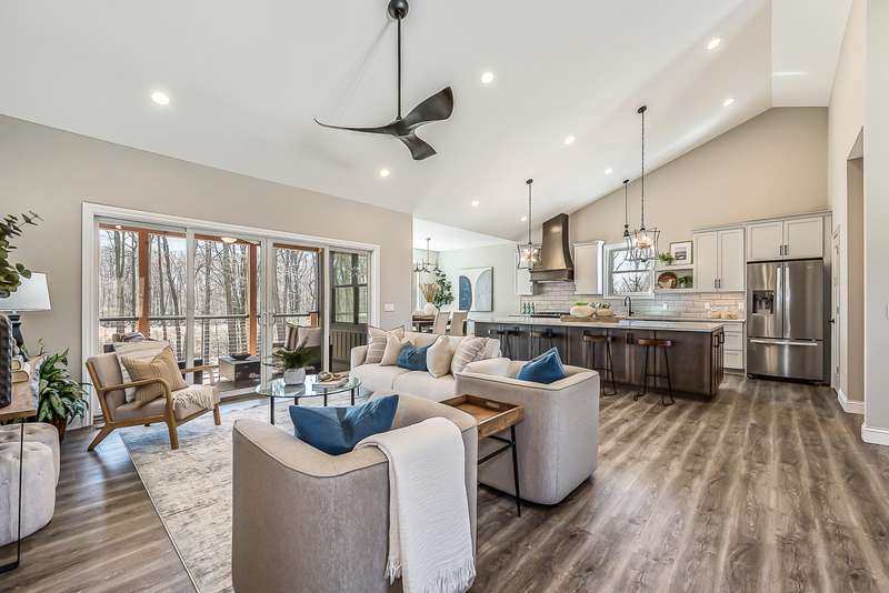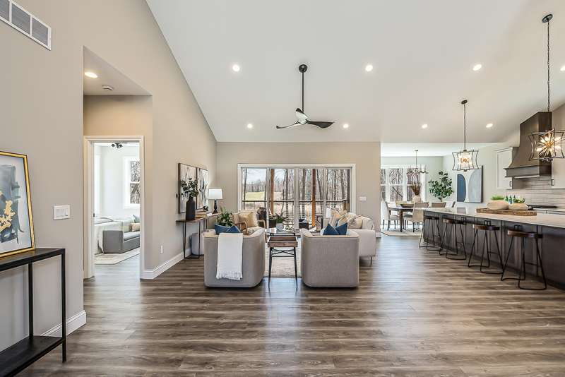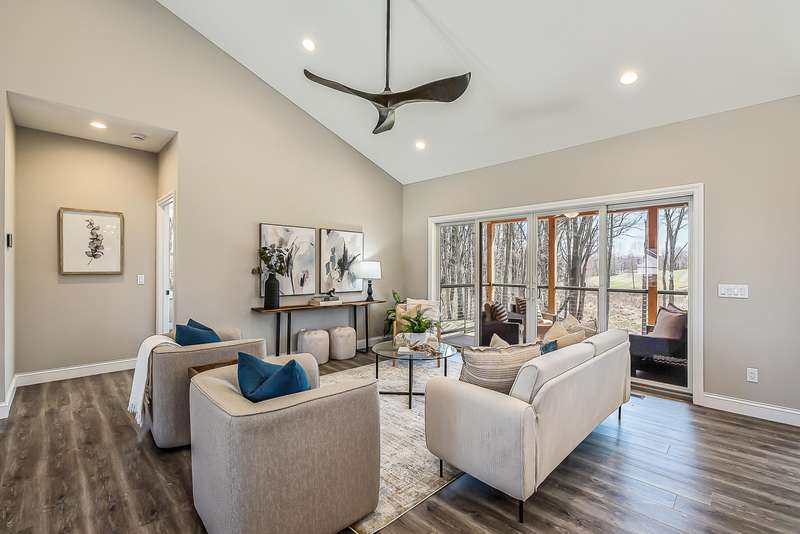 Welcome to 5215 Grande View Lane, right on the award-winning Grande Golf Course! This brand-new custom ranch, just finished in late 2024 and hitting the market for the first time, sits on a private wooded lot with gorgeous golf course views -- and it's packed with high-end details inside and out. The exterior is a showstopper with stunning black board and batten siding, upgraded windows, 2x6 construction, and a high-quality roof with a standing seam metal accent. Plus, you'll love the huge three-car garage -- plenty of space for cars, toys, and storage. Inside, you'll find over 3,500 square feet of living space. The main level offers two spacious bedrooms, including a beautiful primary suite with a custom tiled shower and euro glass doors. The kitchen is a total entertainer'sfeaturing a massive island, custom cabinetry, and top-notch finishes. The finished basement adds even more living and entertaining space, complete with a wet bar perfect for hosting game days or casual get-togethers