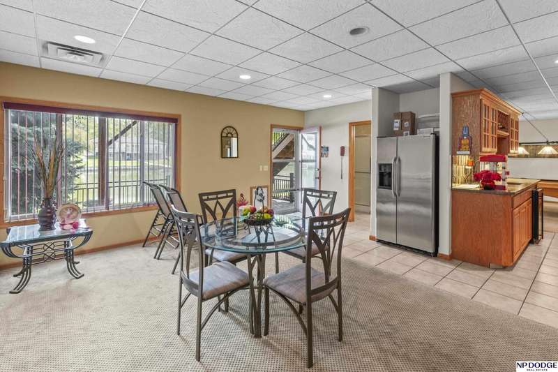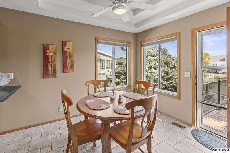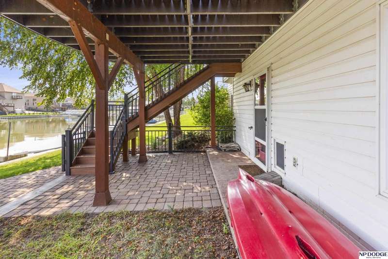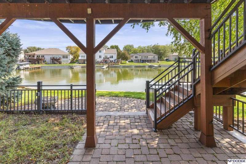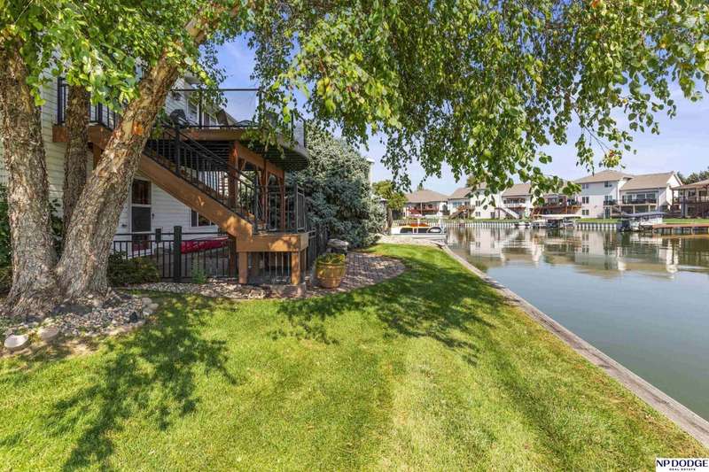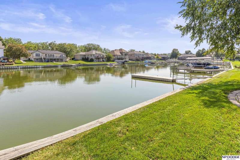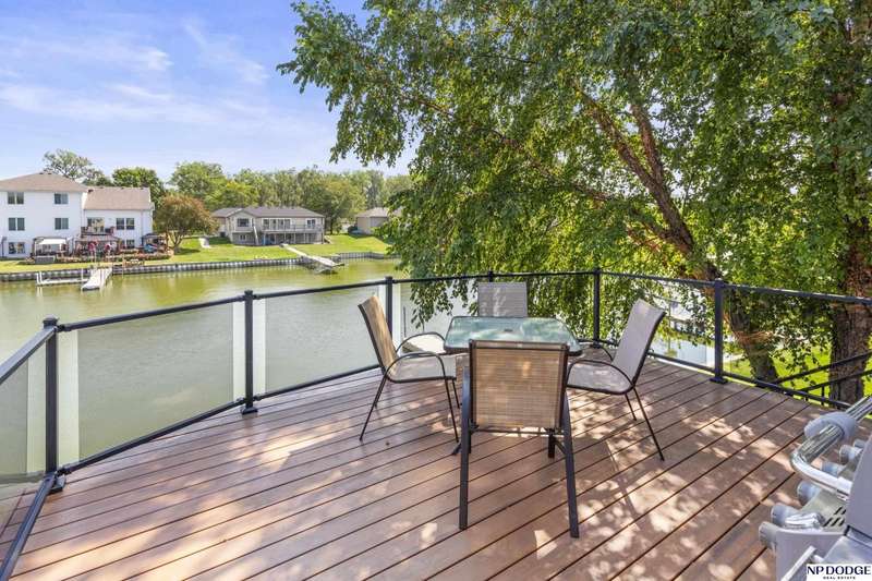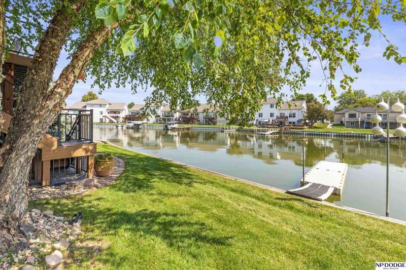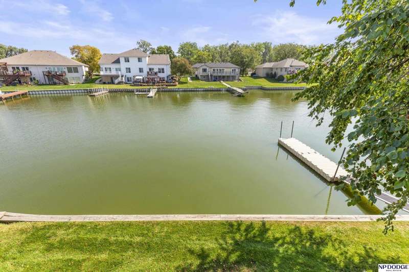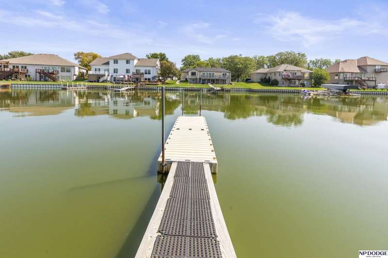 Live the Lake Life at Carter Lake! This spacious 2 BD, 3 BA ranch is perfect for entertaining and relaxing by the water. The kitchen boasts sleek solid surface counters, stainless steel appliances, and a cozy breakfast area with easy access to the deck for outdoor enjoyment. The large primary bedroom features a private bath with dual sinks and a walk-in closet. The fully finished lower level offers even more space with a family room, rec room with built-ins, and a wet bar. Plus, a 3/4 bath and walkout to the patio and dock where you can fish, swim, and boat right from your backyard! Bonus: There's potential to create a conforming 3rd bedroom by redesigning the rec area. Enjoy lakefront living just minutes from Eppley, downtown Omaha, and the Old Market. Don't miss your chance to experience the best of both worlds-relaxed lake life and city convenience!