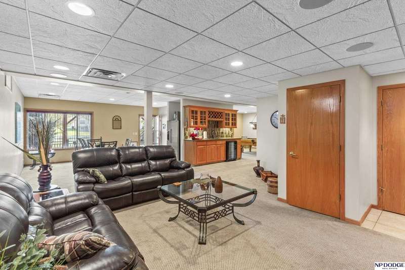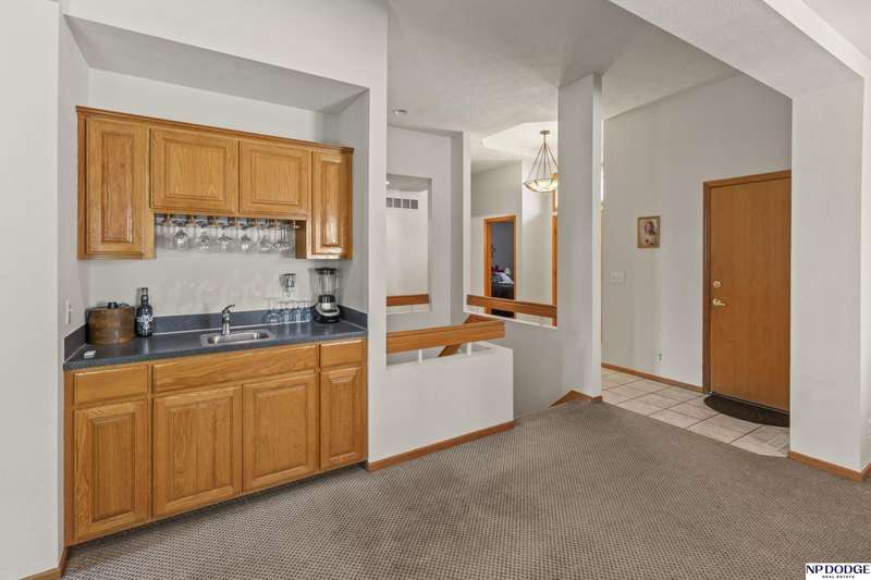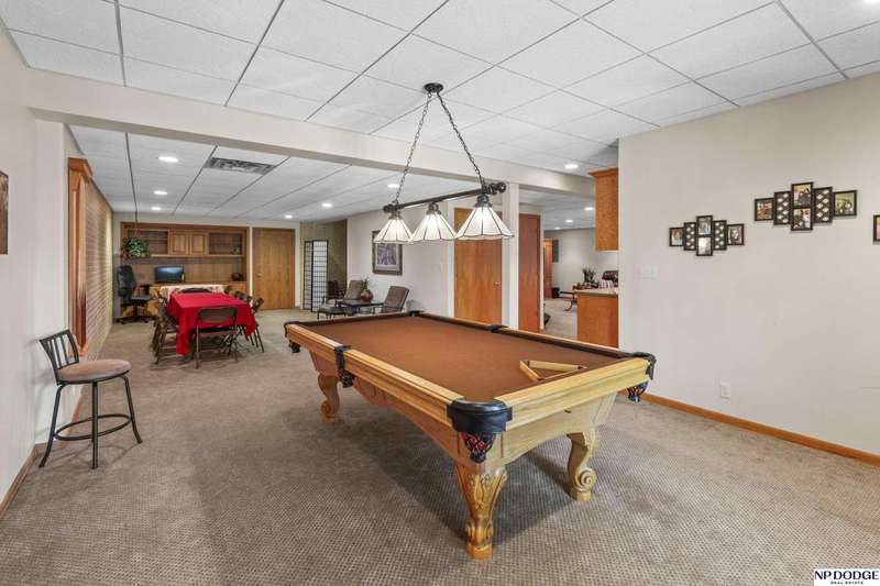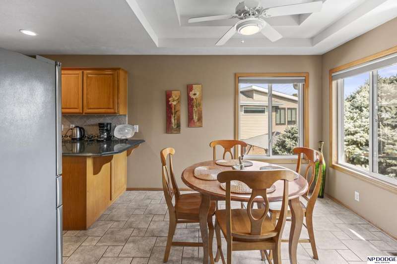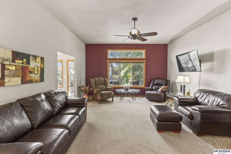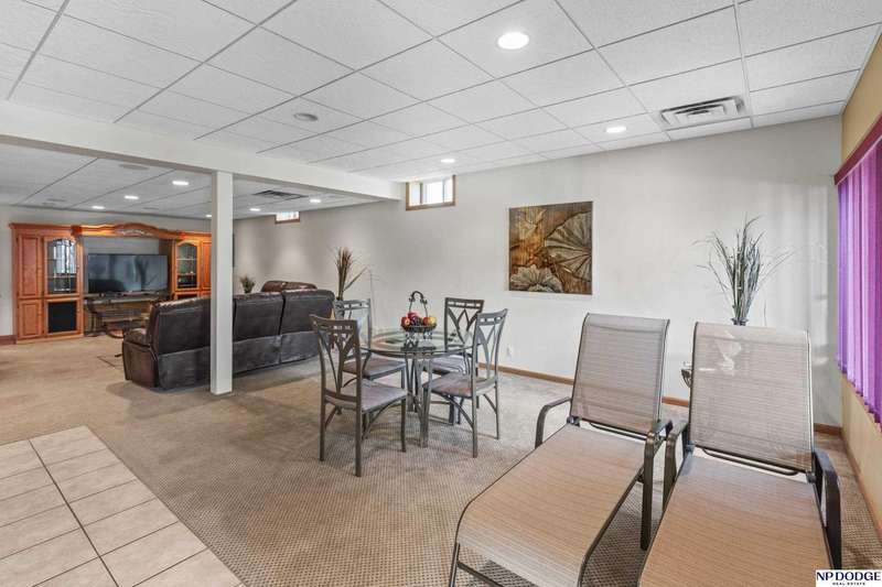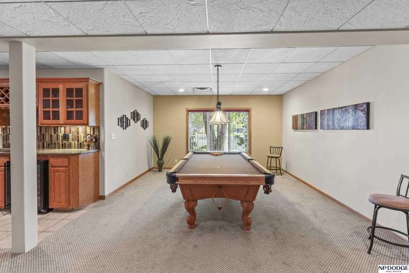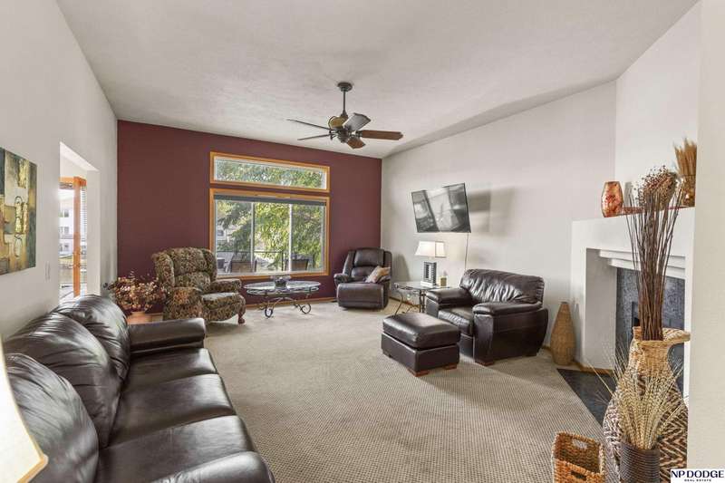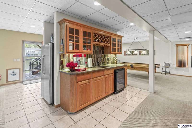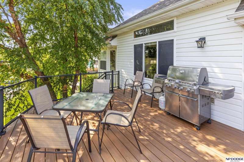 Live the Lake Life at Carter Lake! This spacious 2 BD, 3 BA ranch is perfect for entertaining and relaxing by the water. The kitchen boasts sleek solid surface counters, stainless steel appliances, and a cozy breakfast area with easy access to the deck for outdoor enjoyment. The large primary bedroom features a private bath with dual sinks and a walk-in closet. The fully finished lower level offers even more space with a family room, rec room with built-ins, and a wet bar. Plus, a 3/4 bath and walkout to the patio and dock where you can fish, swim, and boat right from your backyard! Bonus: There's potential to create a conforming 3rd bedroom by redesigning the rec area. Enjoy lakefront living just minutes from Eppley, downtown Omaha, and the Old Market. Don't miss your chance to experience the best of both worlds-relaxed lake life and city convenience!