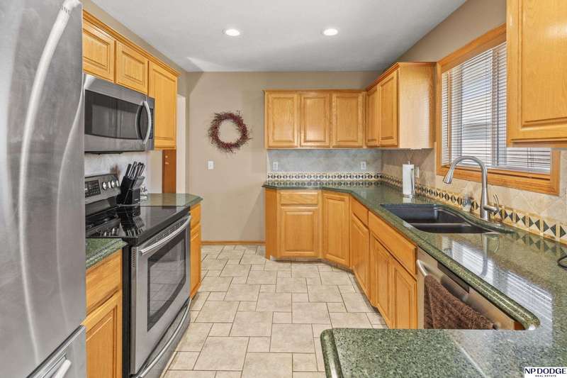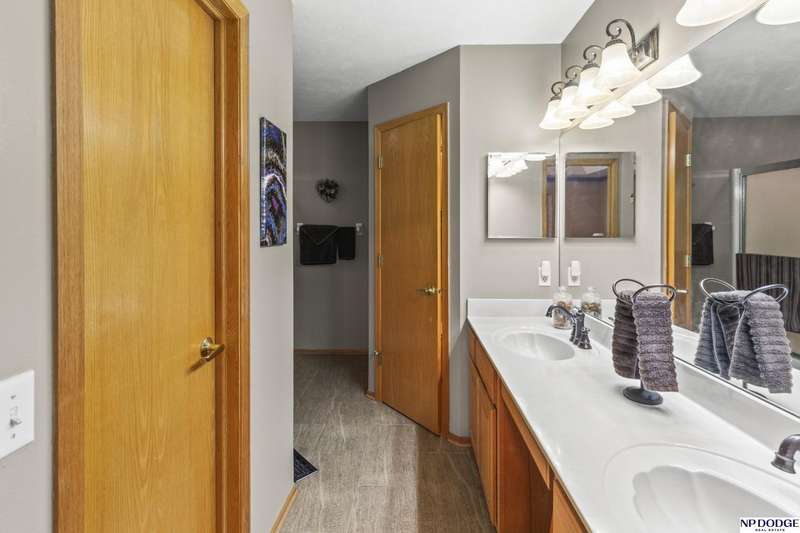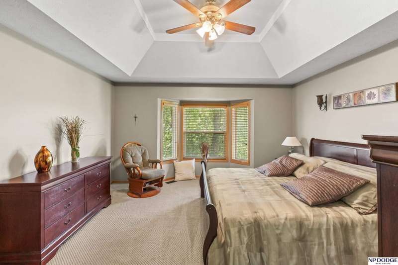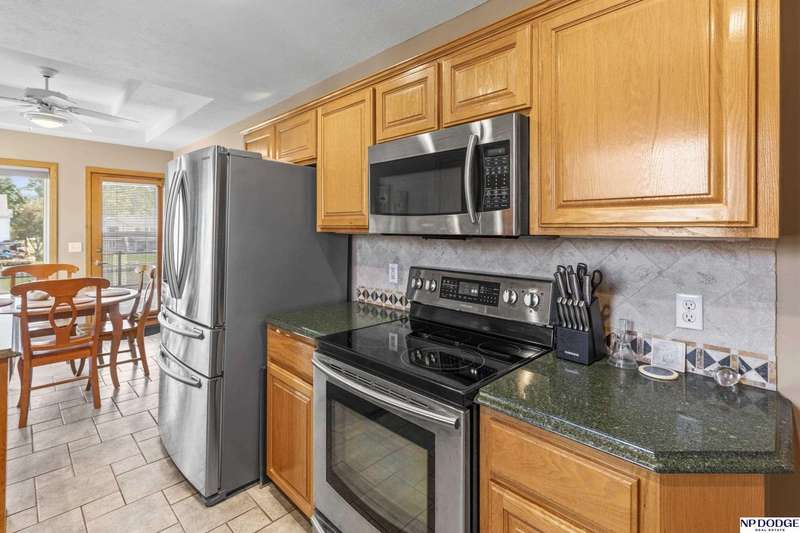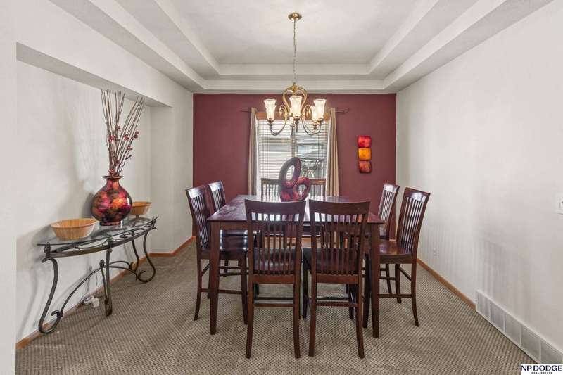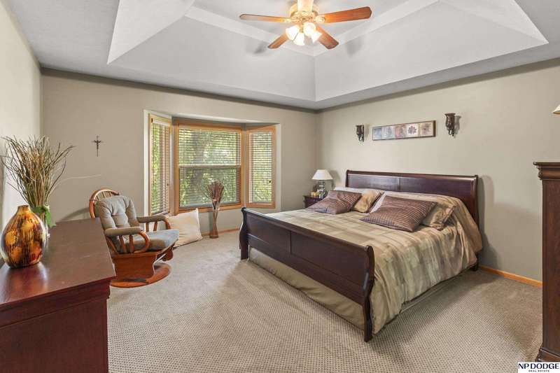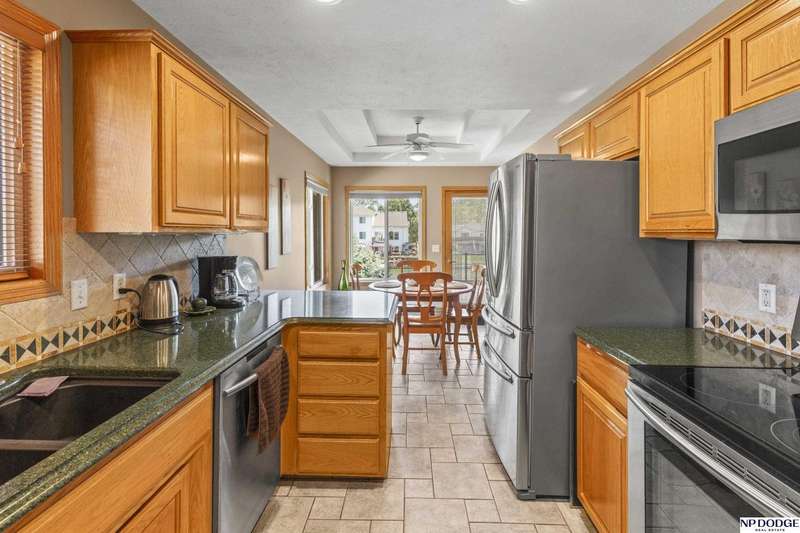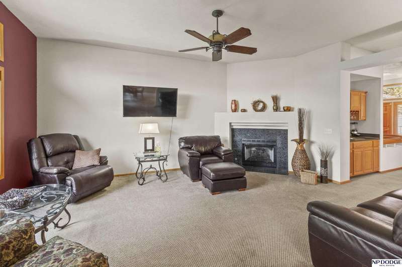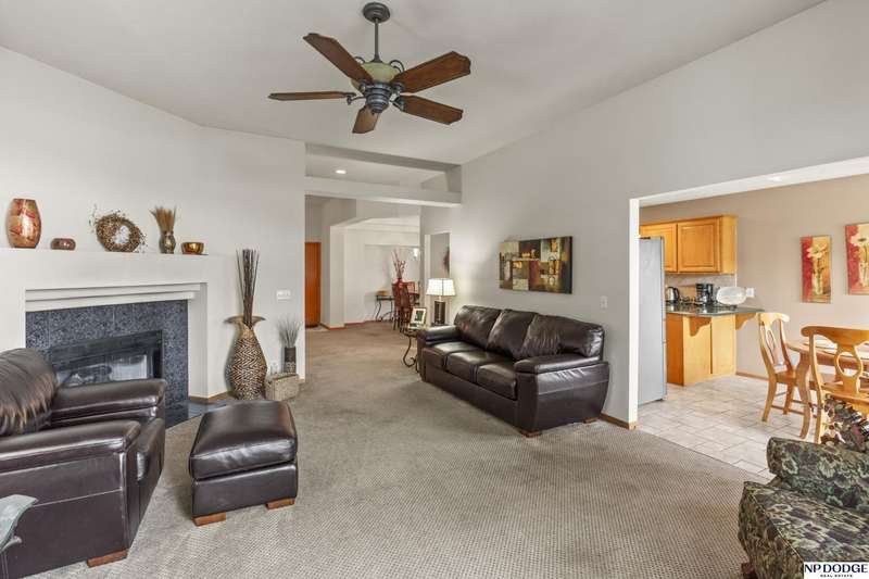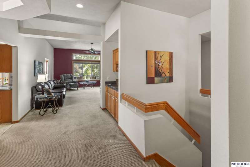Live the Lake Life at Carter Lake! This spacious 2 BD, 3 BA ranch is perfect for entertaining and relaxing by the water. The kitchen boasts sleek solid surface counters, stainless steel appliances, and a cozy breakfast area with easy access to the deck for outdoor enjoyment. The large primary bedroom features a private bath with dual sinks and a walk-in closet. The fully finished lower level offers even more space with a family room, rec room with built-ins, and a wet bar. Plus, a 3/4 bath and walkout to the patio and dock where you can fish, swim, and boat right from your backyard! Bonus: There's potential to create a conforming 3rd bedroom by redesigning the rec area. Enjoy lakefront living just minutes from Eppley, downtown Omaha, and the Old Market. Don't miss your chance to experience the best of both worlds-relaxed lake life and city convenience!