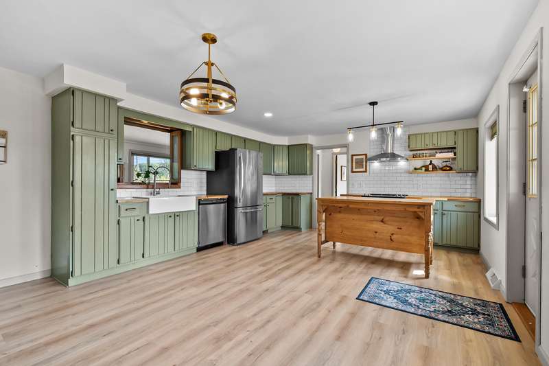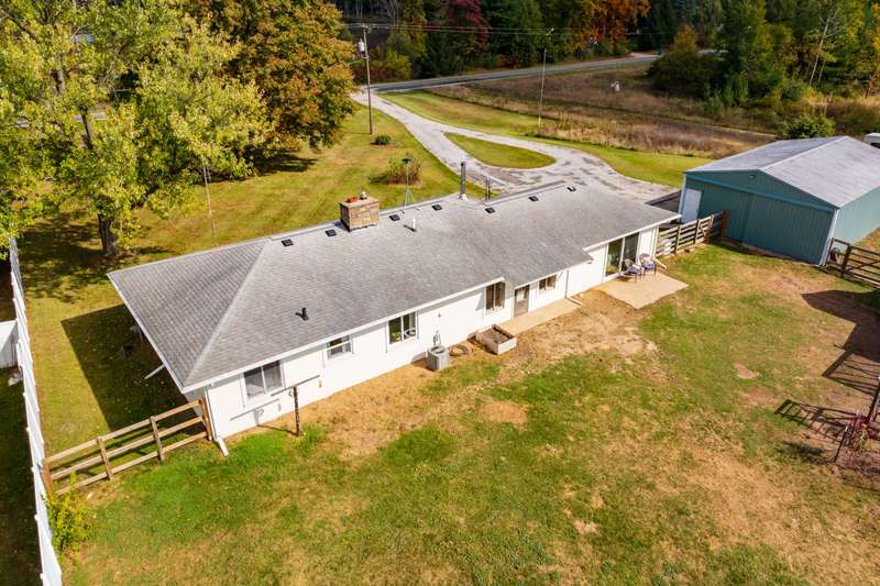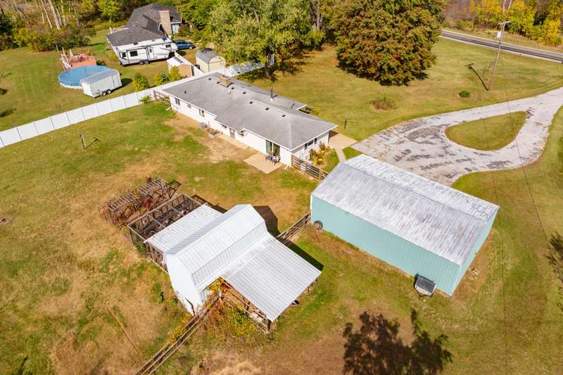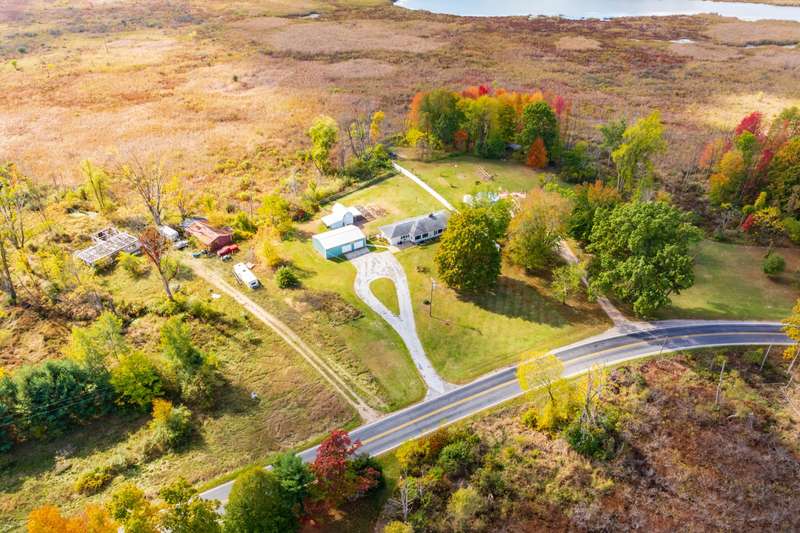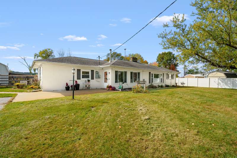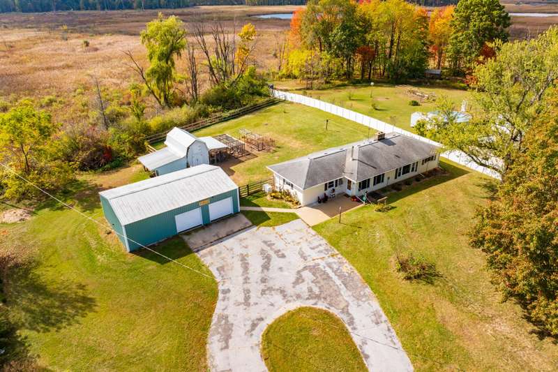 Look what I found, a spacious & remodeled ranch home with pole barn on 1.4 acres. FIBER OPTIC INTERNET & newer, natural gas, Generac whole home generator! Just minutes from local grocery stores and restaurants, you'll find this lovely, updated, 3 bedroom/4th possible, 1.5 bath home. Set well off the roadway, you'll be welcomed home with a circular drive. There is new flooring throughout and new paint both inside and out. The kitchen was redesigned to a more functional layout with a custom island, new stainless steel appliances, butcher block countertops and enormous walk-in pantry. You'll love cozy winter nights by the wood burning fireplace in the living room with peeks at Floria Lake, just across the street. The primary bedroom has been updated with an added half bath, massive walk-in closet, over-sized patio door, patio and mini-split heating & cooling, making it the ultimate retreat. The freshly painted 24x70 pole barn has a concrete floor and wood stove ready to be connected. A second barn was most recently used for chickens and, behind it, you'll find a underground cold storage room that could also be converted to a nice storm shelter. A list of all improvements is available! Don't hesitate on this one or take a chance with clicking "take a tour", call or text the listing agent directly today!