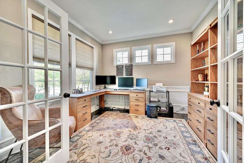 Impeccable ''No Steps'' Ranch Patio Home! 2 bedroom-2 full baths, plus office with French doors, 2 car attached garage, with large family room open to dining room and kitchen. Upgraded flooring. Access to large, covered deck with trees in rear. Huge first floor laundry. Primary bedroom has full bath with large walk-in closet. Upgraded kitchen with large island, granite counters, & subway tile backsplash. Appliances stay. Blinds and 9ft ceilings throughout, wainscotting & crown molding in entry, stairwell, & dining room. Located in cul-de-sac. Low HOA fees & low taxes. Minutes to shopping, entertainment, & I-275. Only 7 years old.