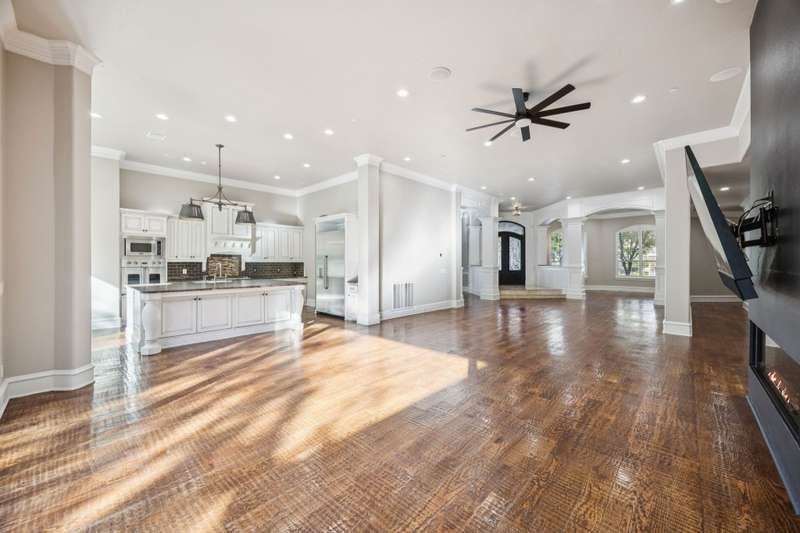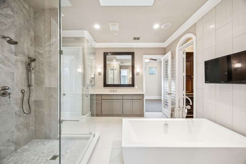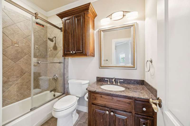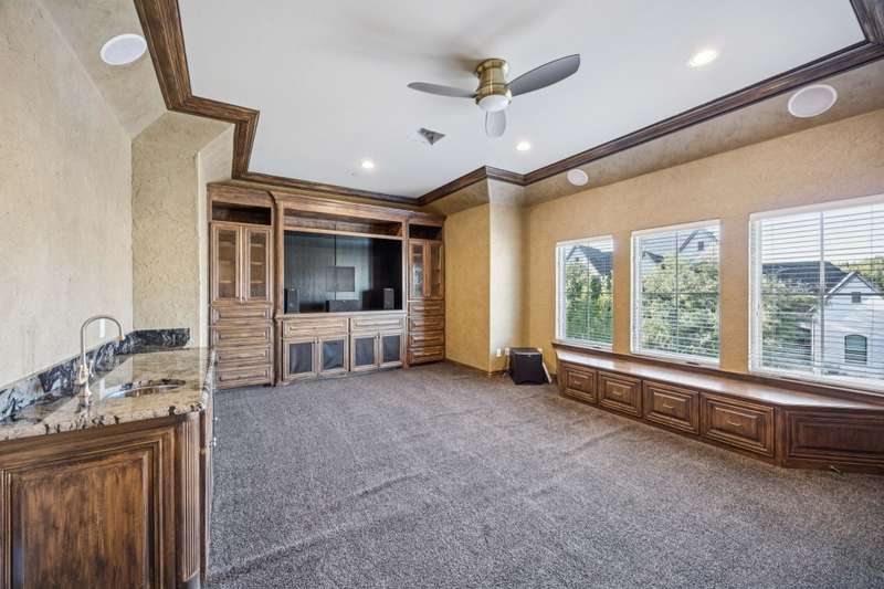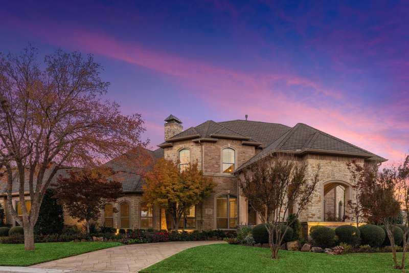 A rare opportunity in the prestigious gated Stonebriar Country Club Estates. Set on a .40-acre interior lot, this custom 6,792 sq ft luxury home blends timeless architecture, privacy, custom finishes & luxurious design. Enter through a private gated drive w-porte-cochere, circular driveway, & split 3-car garage. The secluded backyard is a resort-style retreat featuring lush landscaping & a pool & spa by Hauk Custom Pools. The flexible layout offers 5 bedrooms, 6.1 baths & 7 living areas designed for entertaining, everyday living, or multigenerational needs. The first floor includes a Media room w-bar, 3 Living Areas (including a Billiards Room), Dining, extended Entry (perfect for your prized piano), Executive Study w-fireplace, a tornado safe room & Primary & Guest Bedroom Suites. The Primary Suite functions as a private wing w-Living Room w-fireplace, fitness room w-sauna, dual oversized closets (there's even a shoe closet!), dual water closets & an updated spa-style Bath. A secondary Bedroom w-Ensuite bath on the main level is ideal for guests or multigenerational use. The Chefs Kitchen features premium Viking appliances, leathered granite, blt-in Thermador refrigerator, custom cabinetry & opens to a light-filled family room w-updated elongated fireplace and offers slider doors opening the living area to the pool, spa and gorgeous private landscaped backyard. Upstairs offers a loft Game Room, two Guest Bedrooms w-Ensuite Baths, and a fifth bedroom w-full bath & walk in closet (currently used as a second media room). Additional highlights: double wrought-iron front doors, tankless water heaters, central vac, plantation shutters, wide-plank hardwoods, epoxy-coated garages, mud room, one garage has AC, and concrete safe Tornado room. Prime location near world class golf at Stonebriar Country Club & featuring easy access to SH-121, Dallas North Tollway & DFW airport. Quick access to all shopping & dining at Legacy West, The Shops of Legacy, The Star, & Grandscape.