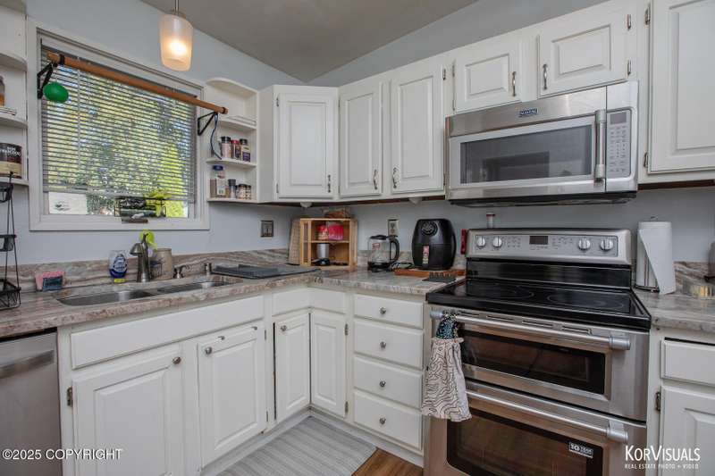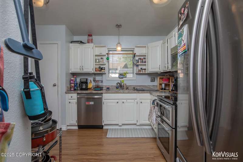 Price reduced! Utility work complete. Powerlines are now underground. Fence work done and affected areas have been hydroseeded. Welcome to your next home! Nestled on a generously sized lot in sought-after South Anchorage, this well-maintained 4-bedroom, 2-bathroom split-level home offers 2,288 square feet of thoughtfully updated living space. Perfect for someone looking for comfort, space & style Step inside to a bright, open layout with luxury vinyl plank flooring throughout, a large entry foyer, and a freshly painted interior that creates a clean, modern feel. The updated kitchen features plenty of natural light, double ovens, stainless steel appliances, and solid surface countertops, ideal for home cooks and freindly gatherings. Enjoy peace of mind with a high-efficiency, on-demand heating system, and unwind in your private in-room sauna located in the main bedroom, your personal retreat after a long day. Outdoor living is just as inviting with new deck surface and stairs in the back, perfect for entertaining or relaxing under the mature trees that provide privacy and natural beauty. Other highlights include: - Large windows throughout for abundant natural light - Generously sized lot with lush tree cover - Large two car garage with access to the main entry and back yard Located in a quiet, neighborhood with easy access to top-rated schools, parks, and shopping, this home combines convenience, comfort, and modern updates. Don't miss your chance to own this gem in South Anchorage. Schedule your showing today! **NOTE: Seller has 2 dogs & 2 cats, so please request showings with at least 3 hours notice to allow time to remove the dogs. Cats are friendly and will either hide or come say hello. If either of the cats get out, it's ok. Also, please remove your shoes when entering.