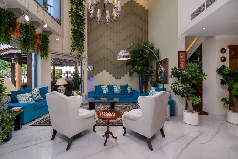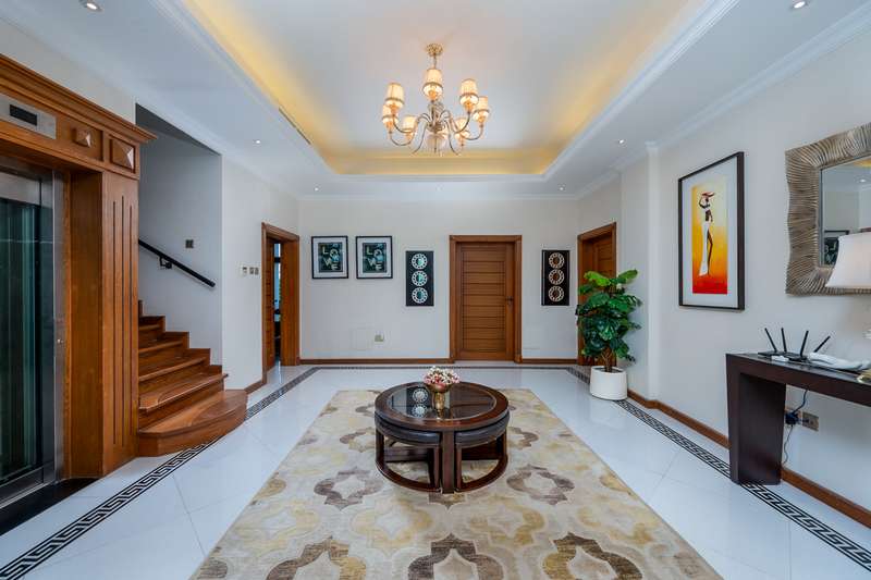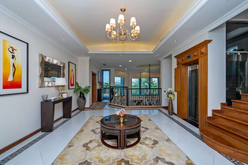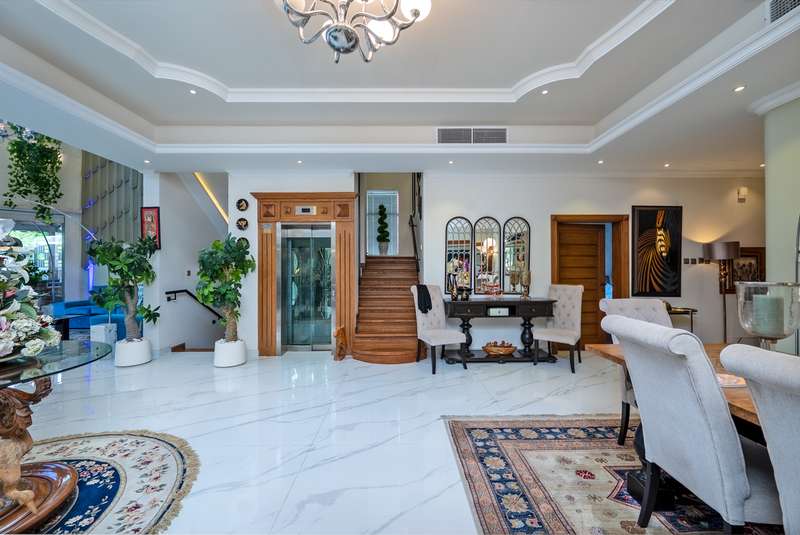 Suraiya and Better Homes are proud to present this elegantly designed custom built house in The Villa. Step into refined luxury with this exceptional bespoke villa — a true masterpiece of design and comfort. Spanning across multiple levels and offering 5 generously sized bedrooms, this residence is perfect for discerning homeowners who value privacy, space, and sophistication. From the moment you enter, you are greeted by a grand lobby, soaring double-height ceilings and floor-to-ceiling windows that flood the home with natural light, creating a seamless connection between indoor elegance and outdoor tranquility. An elevator connects all levels of the home — including a versatile basement space which can be used as a private cinema, gym, or entertainment lounge. The open-plan living and dining areas flow effortlessly onto the beautifully landscaped garden, where a private swimming pool invites moments of relaxation and recreation. Each bedroom is crafted for comfort, complete with en-suite bathrooms and premium finishes. The master suite offers a private sanctuary with serene views, a spacious walk-in closet, and a spa-style bath. Whether you're entertaining guests or enjoying quiet family time, this villa offers the perfect blend of style, comfort, and modern convenience. Key Features: - 5 En-suite Bedrooms - Private Swimming Pool - Elevator Access to All Levels - Multi-Use Basement - High Ceilings & Expansive Living Spaces - Large Glass Windows with Natural Light - Premium Finishes Throughout Schedule a private viewing today.