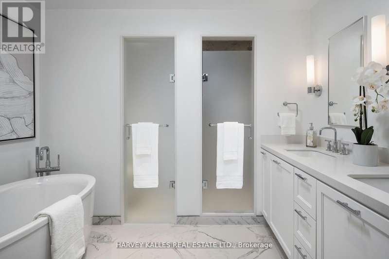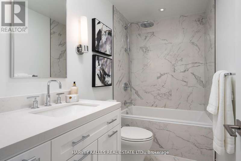 Presenting THE WINSLOW- a new exclusive residence poised at the prestigious intersection of Midtown's Lawrence Park and Lytton Park. This 1,132 sq ft suite, offering an unobstructed westward view, bathes in natural light through expansive floor-to-ceiling windows, perfect for savouring picturesque sunsets from its charming Juliette balconies. This elegant two bedroom suite features a thoughtfully designed split layout, enhancing both privacy and openness in the principal living spaces. The kitchen, ideal for culinary enthusiasts, is adorned with Caesarstone countertops and fitted with a complete Top of the line Miele appliance package, including a gas range, along with extensive custom cabinetry. Upon entry, you are welcomed into a refined foyer with an organized double closet and a guest powder room for added convenience. A walk-in laundry room, discreetly situated, is equipped with a laundry sink and additional custom cabinetry. The primary suite epitomizes luxury, with an oversized designed walk in California Closet. The spa-inspired ensuite offers a double vanity, private water closet, glass-enclosed shower and an elegant freestanding oval tub. The second bedroom boasts ample customized storage and its own refined ensuite with beautiful tile accents. Every window is dressed with stylish blinds, with blackout blinds in both bedrooms for complete comfort. The suite comes with a parking spot and locker that the Seller added for an additional $135,000.00. Elegant quality finishes have been thoughtfully chosen with the smallest detail in mind. Nothing to do but move in and enjoy this newly built upscale building with 24 hour concierge, gym, party room, pet wash and guest suites. Steps to Yonge Street's finest shops and restaurants as well as walking trails, parks and the TTC. **EXTRAS** First class boutique building with full service concierge. Photos from previous listing. 4 pipe fan coil with built-in humidifier. Back up generator. (id:6370)