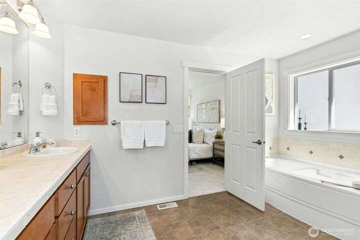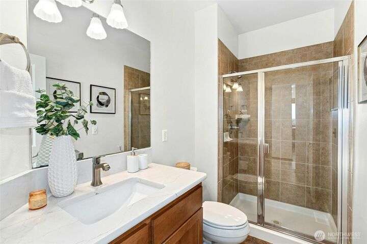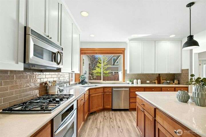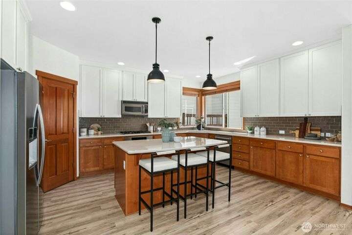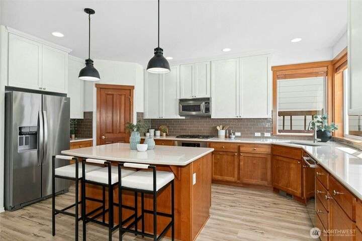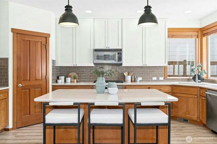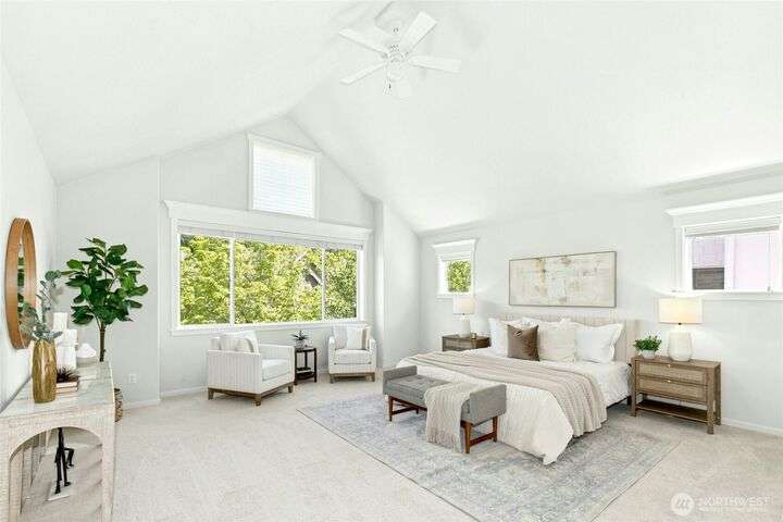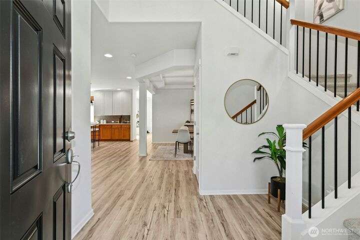 Even before stepping inside, quality updates abound! A gracious entry with soaring ceilings and views to the stone fireplace sets the tone for this completely refreshed home. The open floorplan reveals a remodeled chef’s kitchen, a dining room glowing with new paint, lighting, and classic millwork. An office with Murphy bed & nearby ¾ bath offers flexibility downstairs. Upstairs, a primary suite w/ vaulted ceiling, soaking tub & walk-in closet plus a bonus room invites room for everyone! With new roof & flooring, the comfort of A/C & custom shades, this home is ready! A fenced courtyard gives you (or a pet) instant enjoyment with many of Highlands best parks close by. Peaceful, turn-key, and easy care. This home delivers unmatched value.