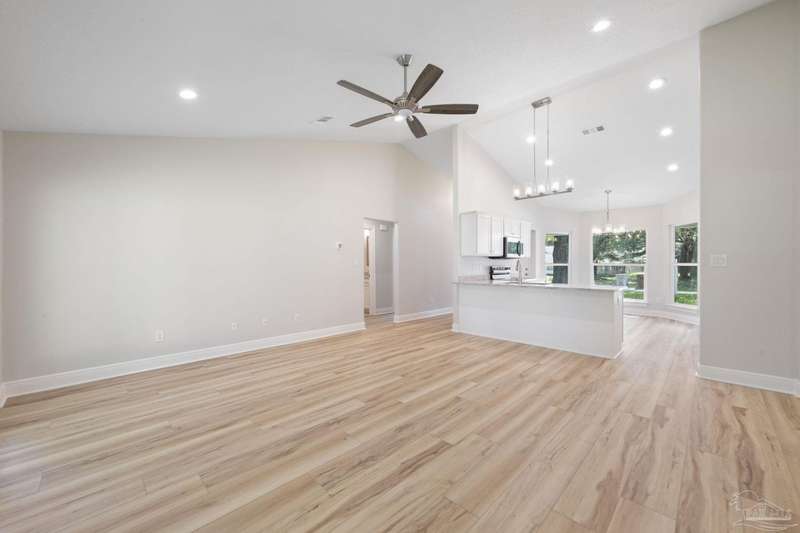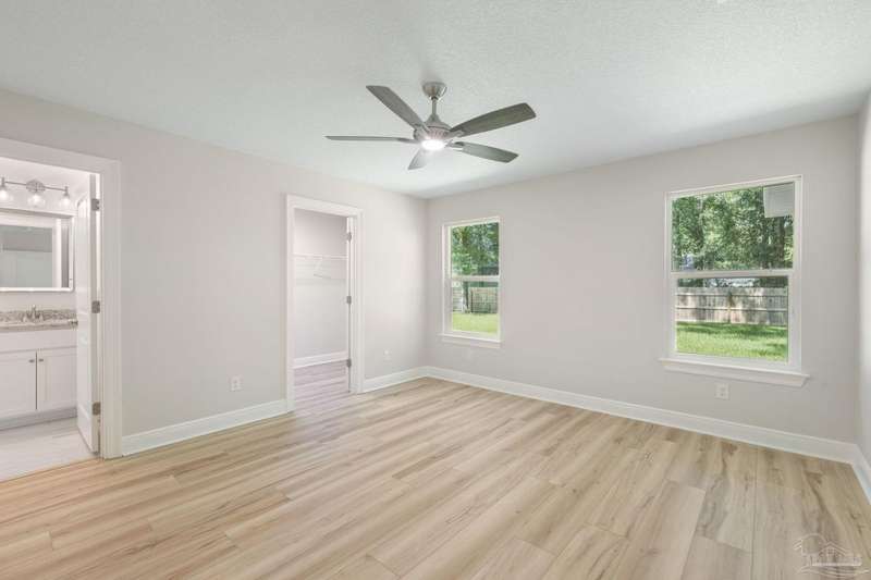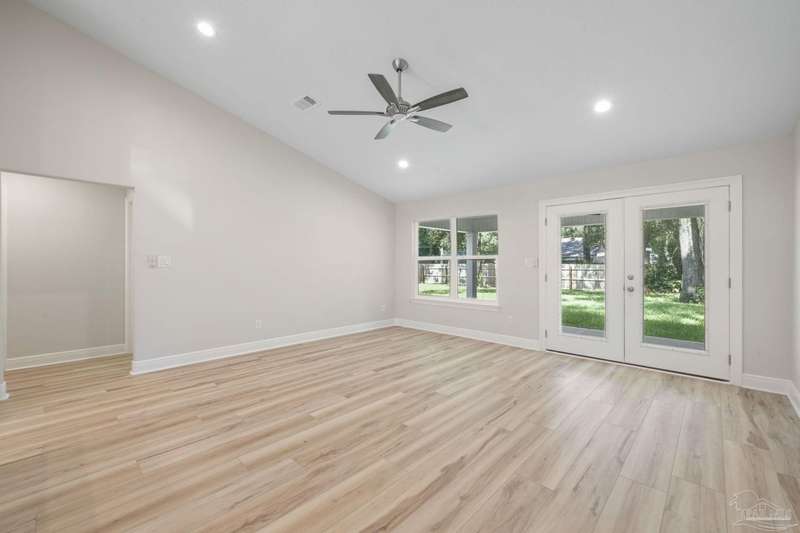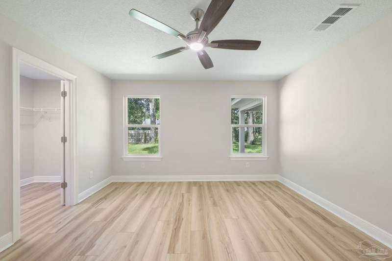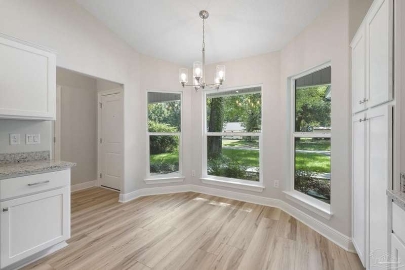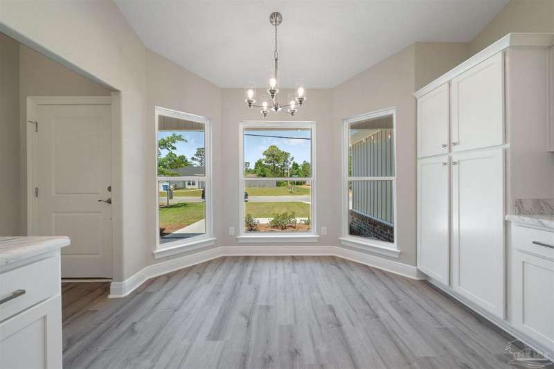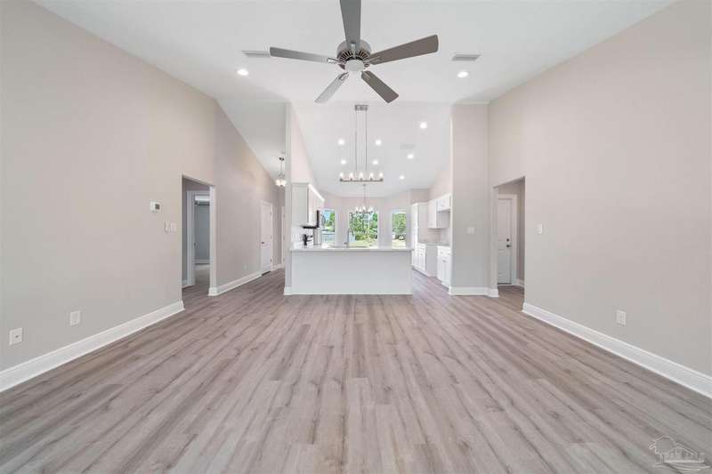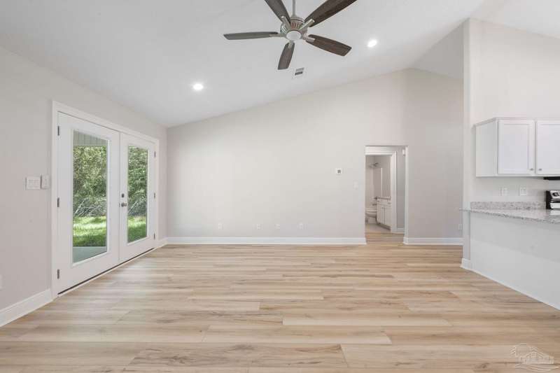 Move In Ready! This stunning new construction offers everything you've been searching for. With 3 bedrooms and 2 full bathrooms, this home is designed to accommodate your lifestyle. As you step inside, you'll immediately notice the abundance of natural light that fills the space. The spacious kitchen features stainless steel appliances, granite countertops, a large wrap around island, and an adjacent breakfast area. With plenty of counter space and storage, meal prep and gatherings will be a breeze. The open concept living space with a vaulted ceiling provides plenty of room to entertain guests or relax with family. LVP flooring throughout. Retreat to the luxurious master suite complete with a generous closet and a spa-like bathroom featuring a double vanity and tiled shower. The secondary bedrooms offer ample closet space, ensuring everyone has their own private retreat. Outside, you'll find a beautiful covered patio and sodded lot with a sprinkler system, making lawn maintenance simple. The finished attached 2-car garage provides convenient parking and additional storage space.