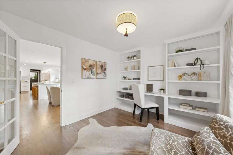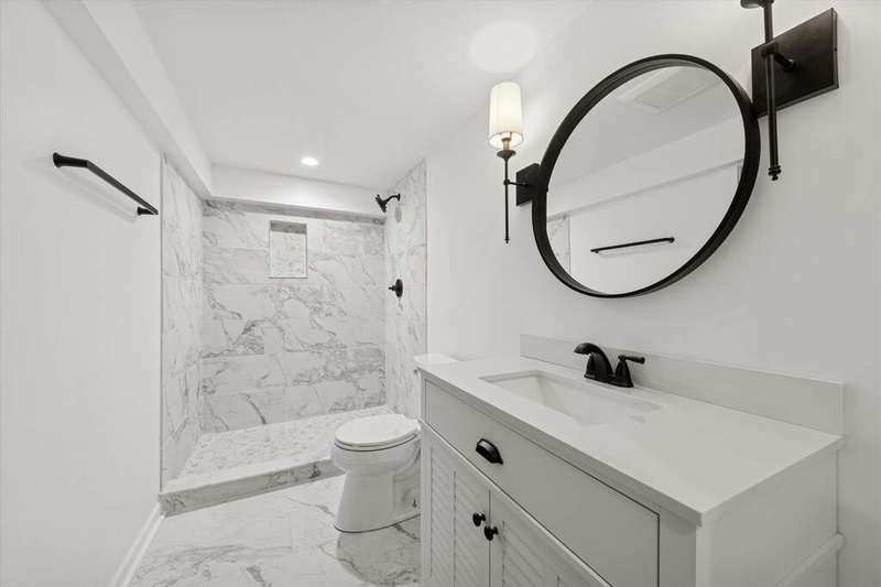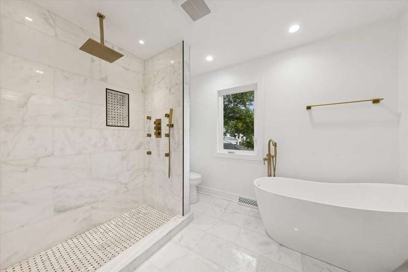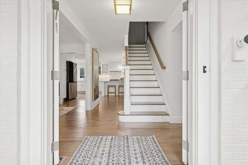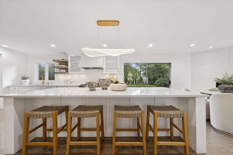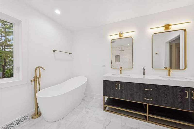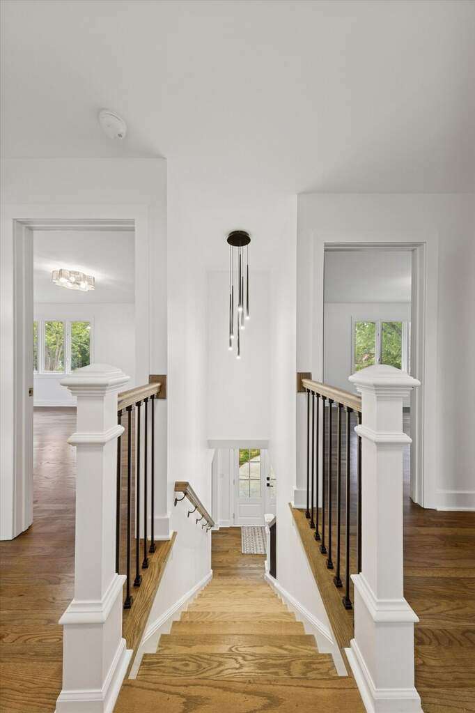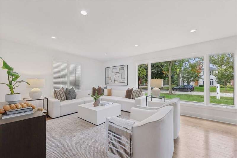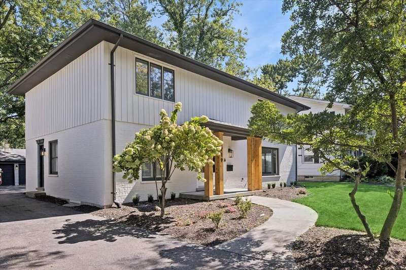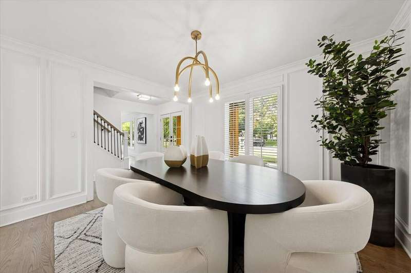 Every detail has been reimagined in this 4 bedroom + bonus room, 4 bath Hinsdale masterpiece, set on an extra wide 66' lot just steps from The Lane elementary. A full 2025 renovation includes a brand new floor plan, elevated design and modern finishes throughout. Step inside to discover a reimagined interior, with new hardwood floors sweeping across the first and second levels, complimented by fresh paint, flawless new drywall and insulation, and sophisticated modern lighting that illuminates every space with warmth. The heart of the home is the new chef's kitchen, anchored by a striking 10' quartz island with seating for five, custom cabinetry and open shelving, tile backsplash, sculptural chandelier and all new appliances. A hidden walk-in coffee station/pantry adds everyday convenience, opening seamlessly to the sunlit breakfast area, complete with a brick wood burning fireplace. Designed for modern living, the first floor features a private office with custom built in shelves and desk, which can optionally be converted to an additional first floor bedroom. The first floor showcases a dining room adorned with elegant picture frame molding and a statement chandelier, a light filled family room designed for gathering, a thoughtfully crafted oversized mudroom with custom built in bench, and a sleek new contemporary bathroom with shower. Upstairs, the primary suite is a true retreat, offering a walk out balcony, custom walk-in closet with new front loading smart washer and dryer, hardwood floors and a completely renovated spa inspired bathroom with a soaking tub, double vanity, Carrara marble tile, contemporary lighting and a shower featuring 6 body sprayers. Three additional oversized bedrooms are located on the second level with hardwood floors and a new updated shared bath with double vanity and modern lighting. The lower level features a spacious recreation room with wine storage area, an additional bonus room that can be used as a bedroom with an en suite renovated full bath, abundant storage and durable new hard surface flooring. Dual laundry centers on both the second and lower levels - both with brand new washer and dryers - deliver everyday convenience. Outdoors, enjoy a professionally landscaped yard with abundant green space, new paver patio and freshly painted exterior. A 2.5 car detached garage, Google nest thermostat and front door camera complete this turn-key home. A rare blend of modern design thoughtful function and luxury finishes - this complete renovation is curated for effortless everyday living.