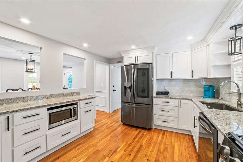 Spectacular completely renovated 4-bed, 4-bath colonial style home located in one of Canton s most desirable neighborhoods nestled in a private lot set back from the street with a semi-circle driveway and a fenced backyard.This spacious home blends modern updates with a flexible layout.The main level features gleaming hardwood floors,a large formal living room,a dining room with wainscoting,and a family room with fireplace along with sliders to balcony.Bright renovated kitchen with white Shaker cabinets,granite countertop,SS appliances with access to a screened deck,and a direct access to large garage.The 2nd floor boasts beautiful master suite with full bath, and walk-in-closet along with three more bedrooms and a second full bath.The finished lower level includes full bath,laundry area and storage.Recent updates include a newer roof,newer windows,newer exterior siding and solar panels.Ideal location to major highways, Ponkapoag golf course, and Blue Hills skiing. A move-in ready gem!