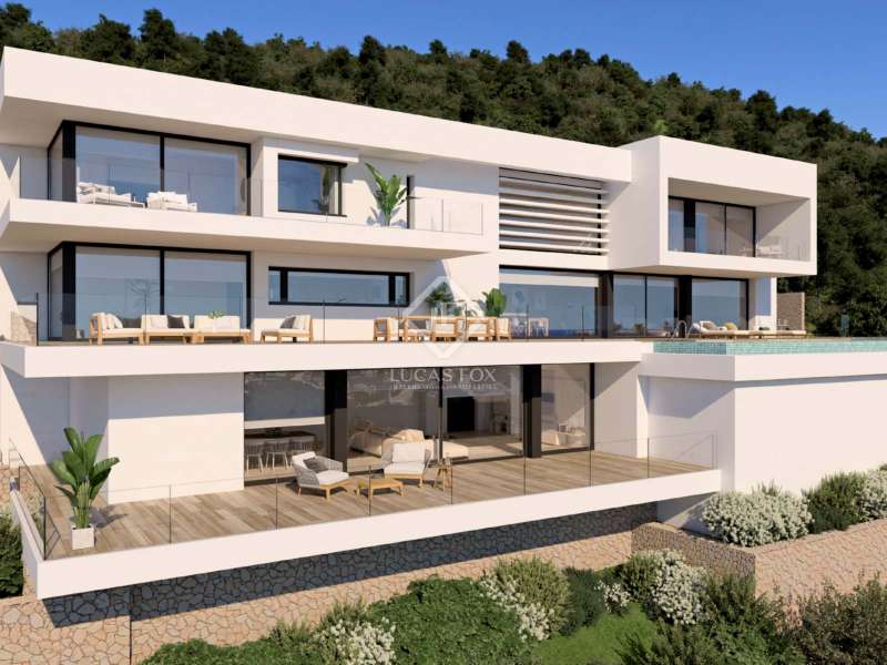 Villa Marblau has its unique characteristics. All rooms are spacious and bright and have their own bathroom. The main bedroom comes with a walk-in-closet, a big terrace and an en-suite bathroom with a bathtub in which you can relax while enjoying the sea views. The day area is the perfect place for your guests and its spacious living room includes a dining room which can easily accommodate a big family. This area has double-height ceilings, and slats in the top windows provide light and grandeur. The kitchen, where we find another dining area, offers amazing views thanks to its window front, which conveys a warm atmosphere. Both, living/dining room and kitchen give access to an impressive terrace with solarium and chill-out zone as well as a big infinity pool with jacuzzi. The bottom floor surprises with an extra space, which can be converted into an apartment with a bedroom, bathroom, dining room, terrace and porch. Villa Marblau also has covered parking space for 3 cars and a lift for all 3 floors, adding comfort and functionality. Furthermore, there is extra space which can be designed to become a play room, a studio, an office or another lounge. If you are looking for a unique space for all family members, this could be your new home in Residential Resort Cumbre del Sol.