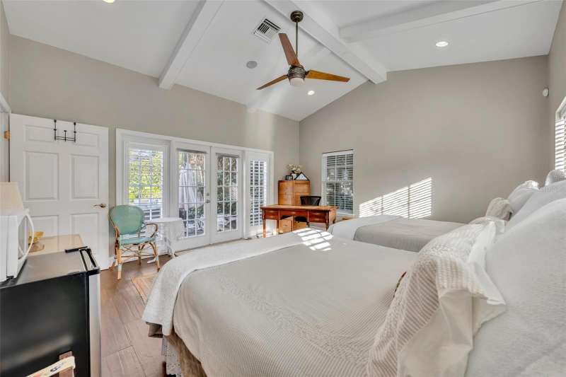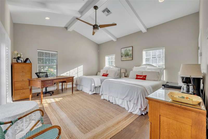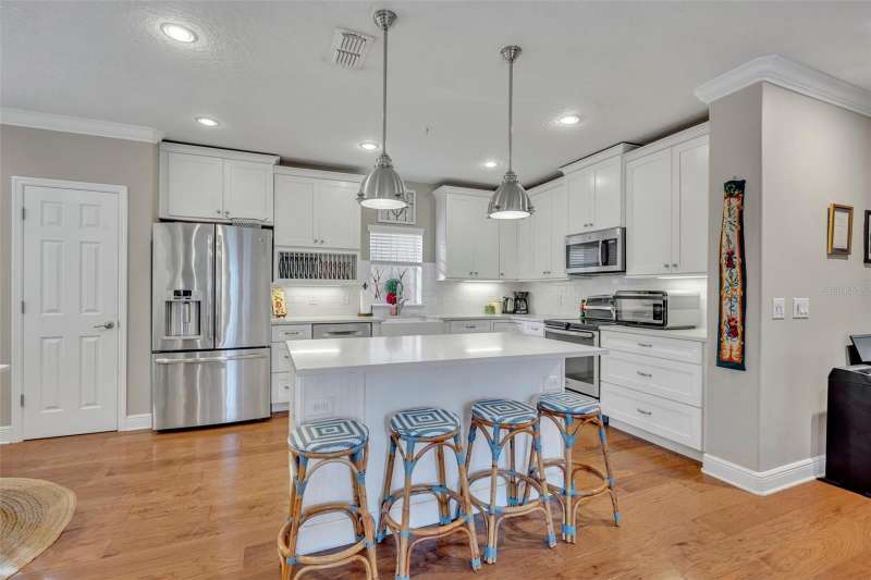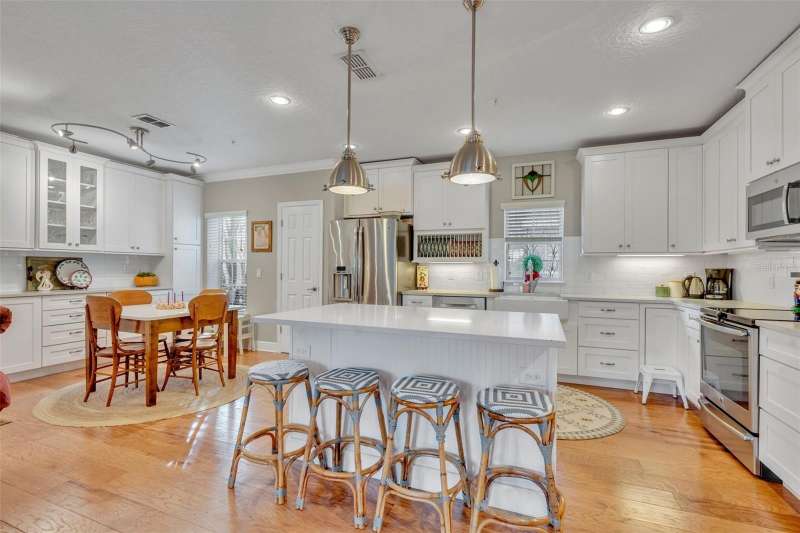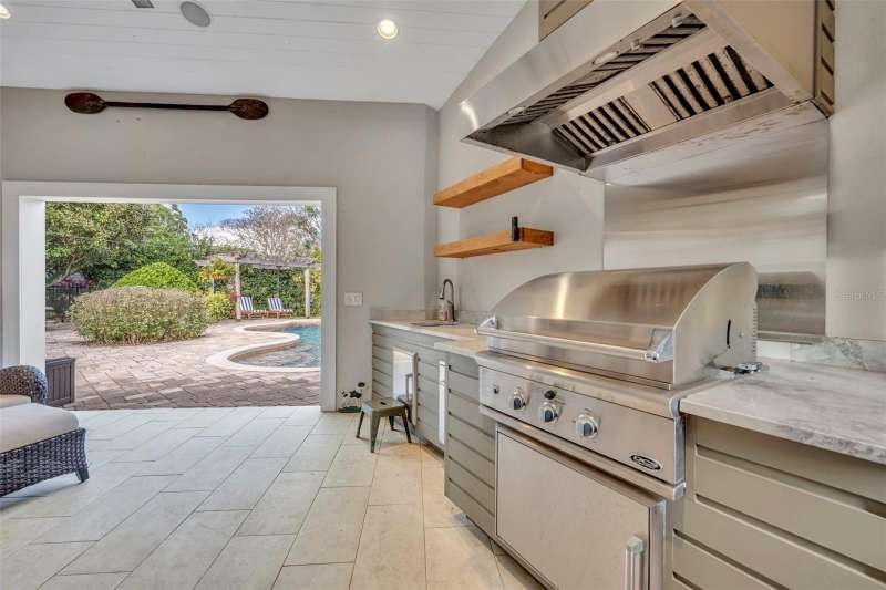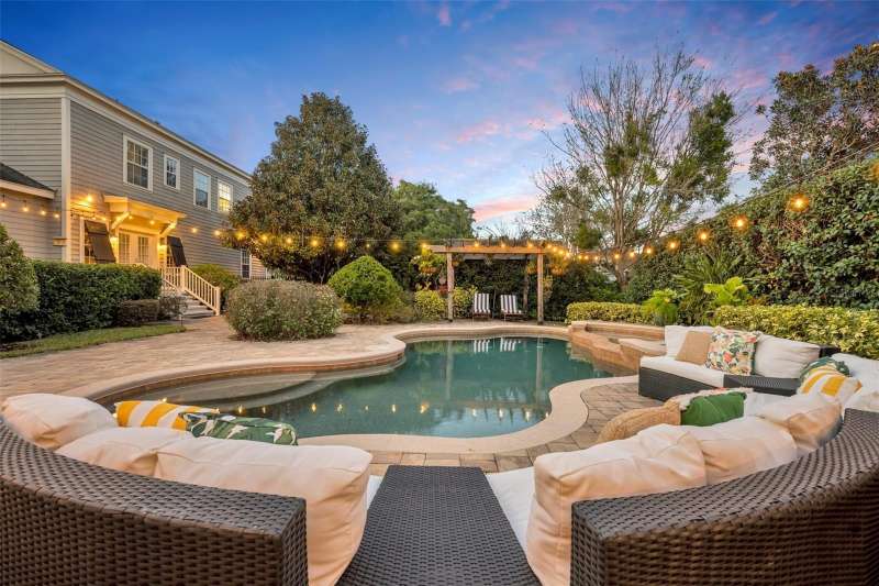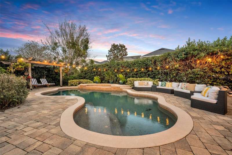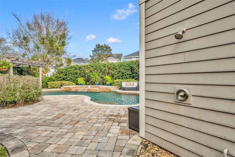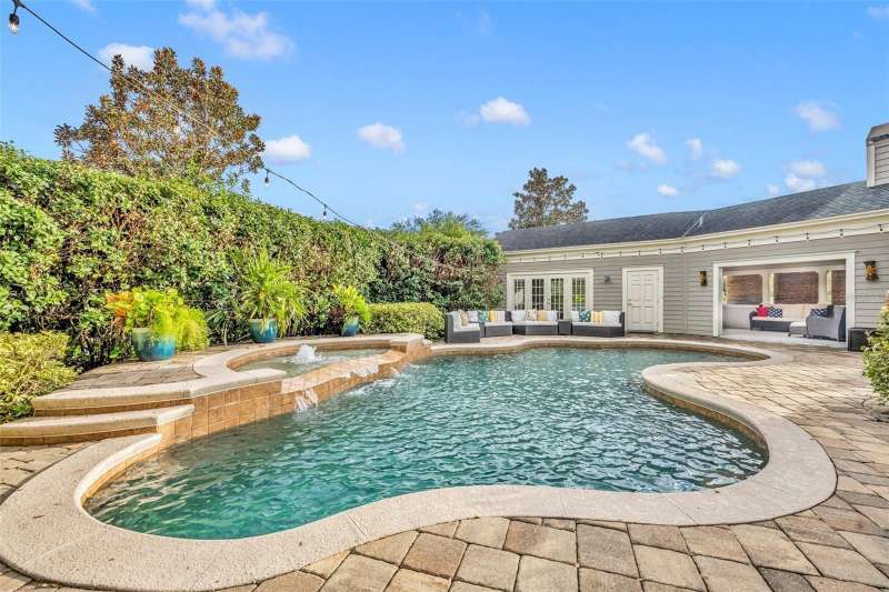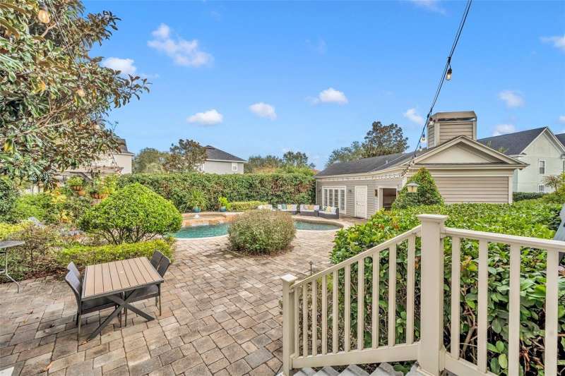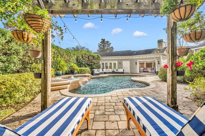 Welcome to this one-of-a-kind oasis pool home located in the heart of Baldwin Park. Nestled on the charming Baskin Mews, this property sits on a rare ¼ acre of land, providing privacy and ample outdoor entertainment space. The beautifully landscaped grounds feature a pebble-tech pool with water feature, a spacious pavered patio, great for lounging by the pool and outdoor dining. A covered cabana with an outdoor kitchen equipped with a large built-in DSC grill, hood, sink, refrigerator, wood-burning fireplace, and TV, making it the perfect spot for year-round entertaining. Attached to the cabana is a 400 sq ft Mother-in-law suite with a full bathroom, separate entrance and direct access to the pool area, ideal for guests or private office space. Inside, the main home there are wood floors throughout, an updated kitchen, which overlooks the family room and features quartz countertops, stainless steel appliances, a subway-tiled backsplash, a farmhouse sink, a large island with seating, and a custom wall of cabinetry designed for easy entertaining and storage. There are three spacious bedrooms, a downstairs office or playroom, and 2.5 bathrooms. The attached two-car garage is equipped with storage systems, providing space for vehicles, toys, and bikes. There is also an oversize/extended driveway directly behind the garage offering space for several cars, which is a huge plus. Upstairs, the primary suite offers tray ceilings, split vanities with a makeup area, a soaking tub with a separate shower, and a walk-in closet. Two additional bedrooms, an additional bathroom, and a laundry room complete the upper level. This home's location couldn’t be more ideal. The property is near High Park, a lush, tree-lined park with a pond, two pavilions, a tot lot, and pool. It is also adjacent to the Lake Baldwin Running Trail and close to Lake Baldwin Dog Park, making it the perfect place for outdoor enthusiasts. Baldwin Park is a community that provides numerous parks and walking trails, with access to three pools, a fitness center, and several playgrounds. The downtown village provides plenty of dining, shopping, and entertainment options, and the home is just a short distance from Downtown Orlando and Winter Park. The community is currently zoned for Baldwin Park Elementary, Glenridge Middle, and Winter Park High School. If you love the outdoors and community living, this is the perfect place to call home.