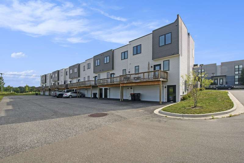 Chic and contemporary townhome with a prime location in Caledonia Schools. This stunning residence offers over 1500 SF of finished living space in an open-concept design, 9ft ceilings on the main floor, and floor-to-ceiling windows that flood the space with natural light, highlighting the sleek, modern finishes throughout. Experience the spacious living area, dining area, and open-concept kitchen with LVP floors, quartz counters, subway tile backsplash, and stainless steel appliances. The primary ensuite bathroom offers a tiled shower, a double-sink vanity, and an upgraded walk-in closet. Two additional bedrooms, a full bath, and additional laundry on the upper level. Ample additional storage, a secondary laundry space, and an oversized two-car garage on the lower level. Other extras include a large back deck, a covered front porch, extra guest parking, central A/C, low HOA dues of only $250 per month, and more. The location provides easy access to shopping, dining, the Gerald R Ford International Airport, highways, and other area amenities. This Port View Townhome offers the perfect blend of style and convenience. Don't miss the opportunity to make this exquisite property your new home!
