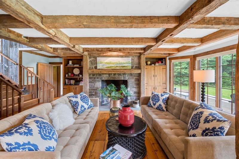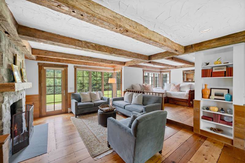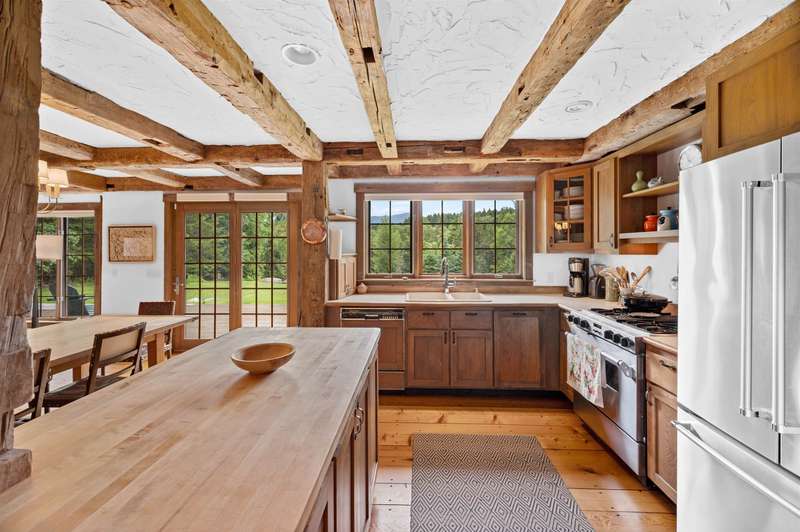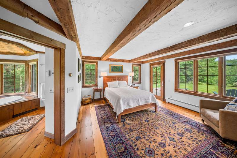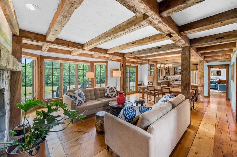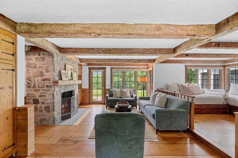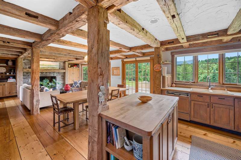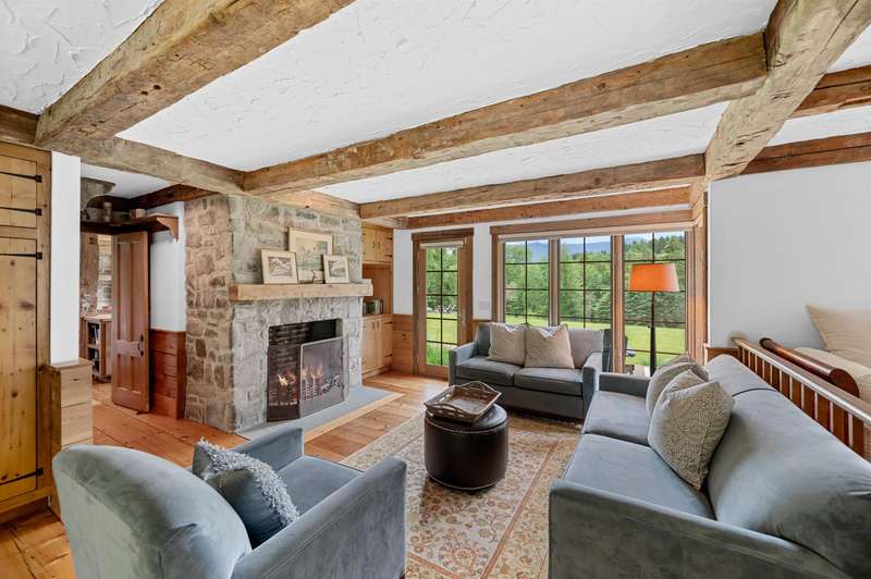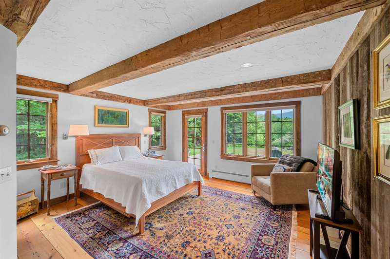 Tucked away in the peaceful Edson Woods enclave, this exceptional property spans 8 scenic acres and offers sweeping views of Mt. Mansfield. A true Vermont retreat, it provides unmatched privacy and serenity just minutes from town. The home showcases timeless craftsmanship, with hand-hewn beams reclaimed from a historic Vermont barn and a post-and-beam design that lends rustic charm and authentic character throughout. Carefully curated vintage materials enrich the interiors with warmth and texture. Two wood-burning fireplaces anchor the main living spaces, creating a cozy and inviting atmosphere year-round. An additional accessory suite provides flexibility for guests or extended family. Expansive decks wrap around the home, perfect for entertaining or simply soaking in the mountain air and tranquil surroundings. This rare property offers more than a home—it offers a lifestyle steeped in natural beauty and Vermont heritage.