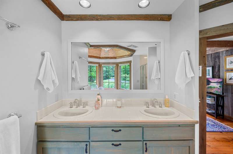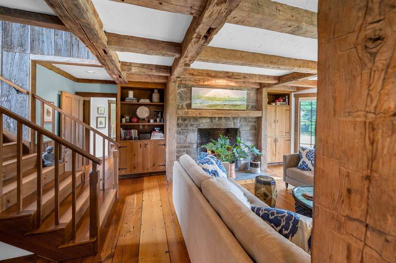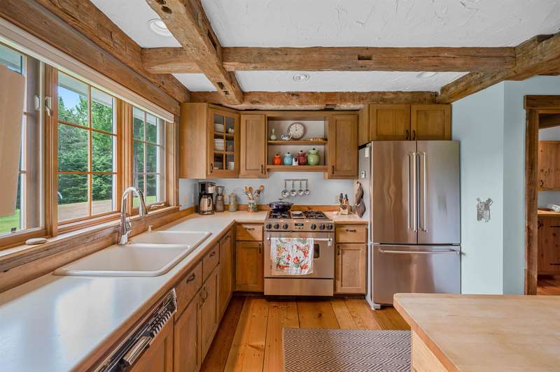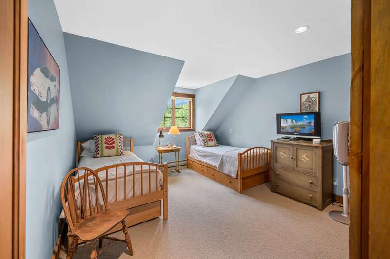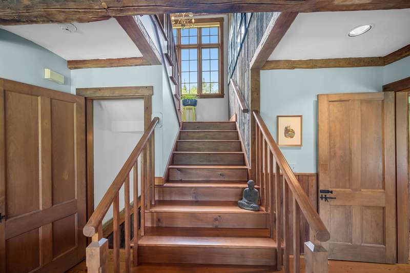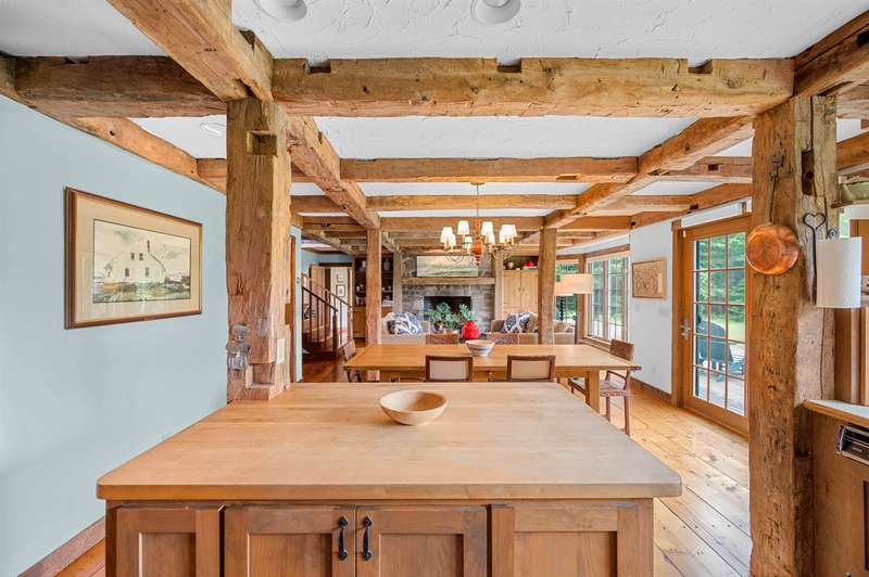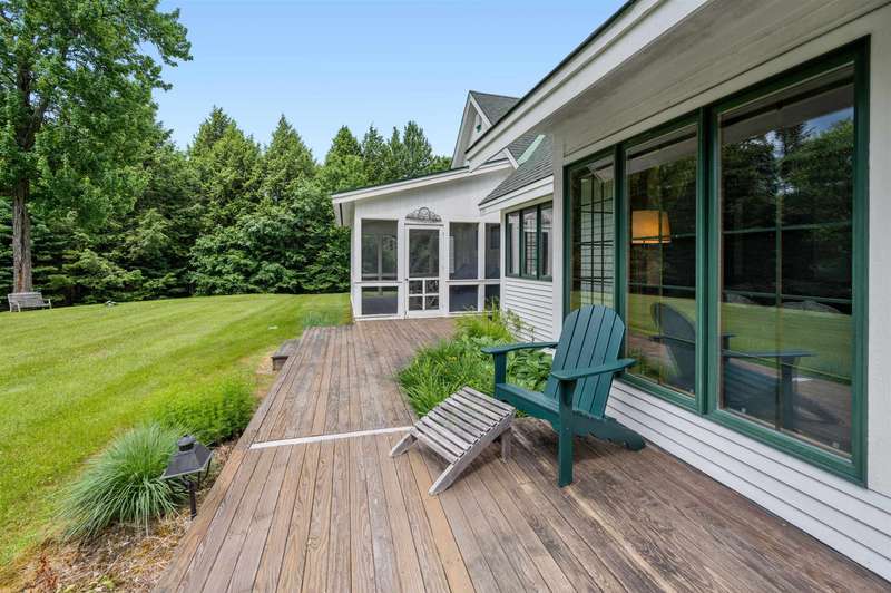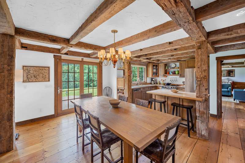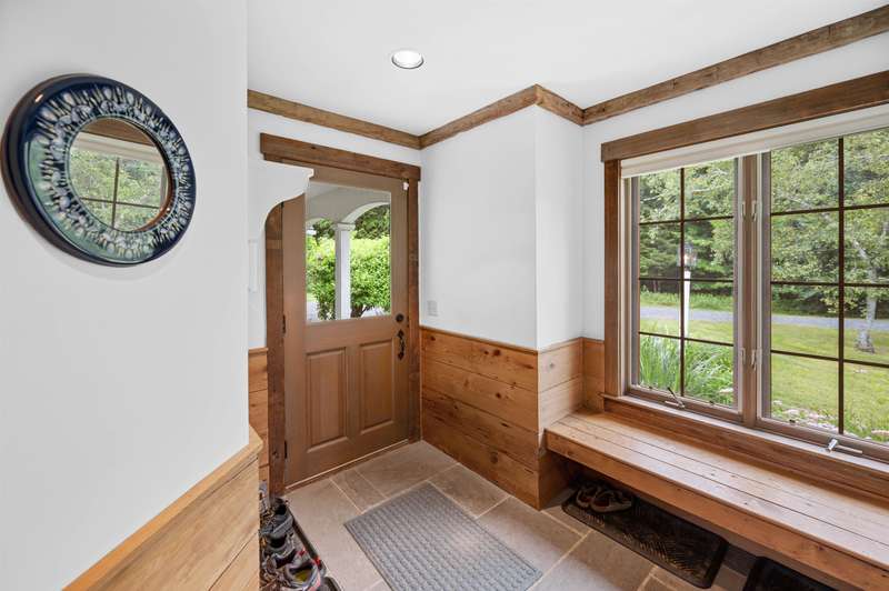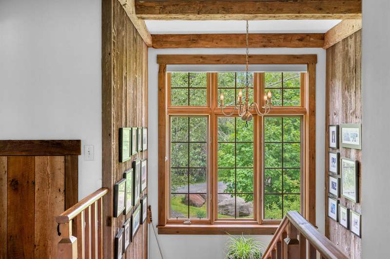 Tucked away in the peaceful Edson Woods enclave, this exceptional property spans 8 scenic acres and offers sweeping views of Mt. Mansfield. A true Vermont retreat, it provides unmatched privacy and serenity just minutes from town. The home showcases timeless craftsmanship, with hand-hewn beams reclaimed from a historic Vermont barn and a post-and-beam design that lends rustic charm and authentic character throughout. Carefully curated vintage materials enrich the interiors with warmth and texture. Two wood-burning fireplaces anchor the main living spaces, creating a cozy and inviting atmosphere year-round. An additional accessory suite provides flexibility for guests or extended family. Expansive decks wrap around the home, perfect for entertaining or simply soaking in the mountain air and tranquil surroundings. This rare property offers more than a home—it offers a lifestyle steeped in natural beauty and Vermont heritage.