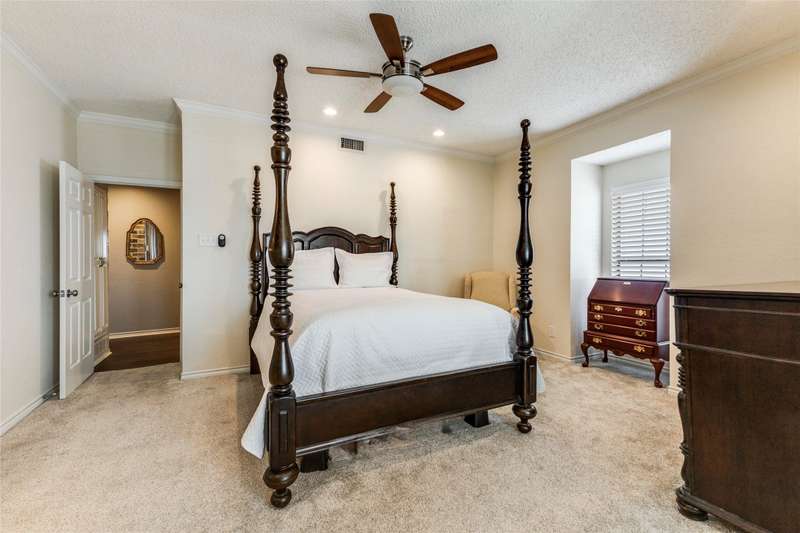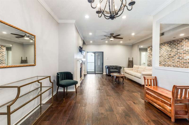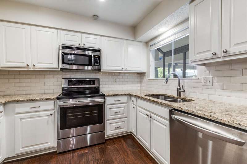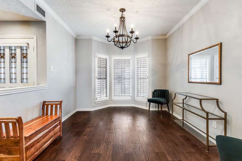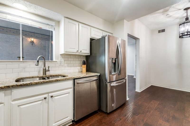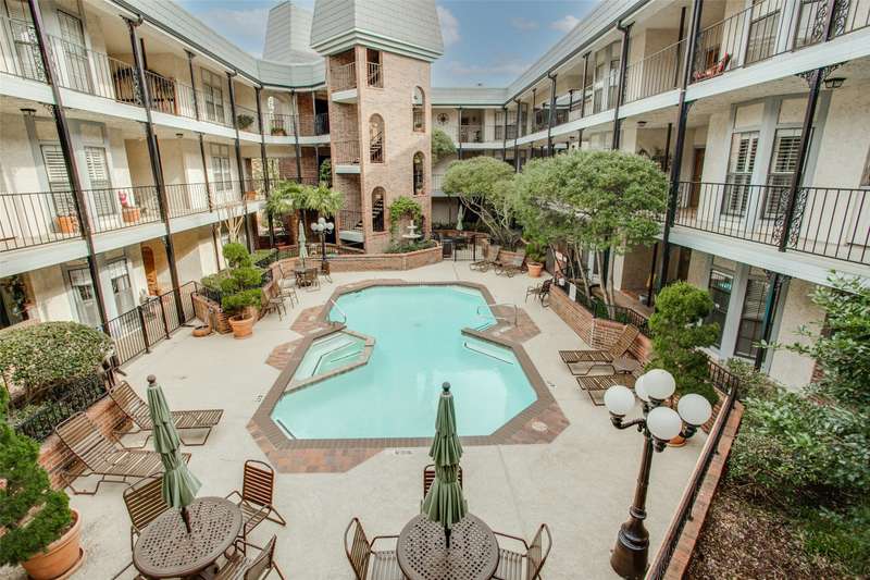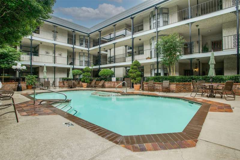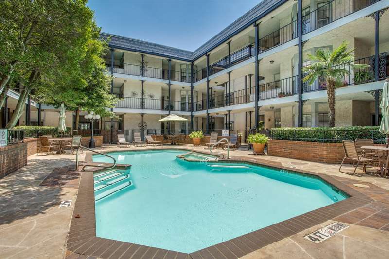 Nicely updated 2 bedroom 2 bath located on the top floor in desirable Le Parc, a boutique midrise in Preston Hollow. Large living room with wood-type flooring and fireplace is open to the dining area. The kitchen features granite countertops and is adjacent to the breakfast and living area which opens to a private balcony. The spacious primary bedroom has a walk-in closet and updated ensuite bathroom with a walk-in shower. The secondary bedroom is ensuite and has direct access to the balcony. Le Parc is a quaint condominium development with a community pool and elevator access to all resident floors. Other features include 2 assigned garage parking spaces and storage area. This is an excellent opportunity in an ideal location bordering the Park Cities and near some of Dallas' best dining and shopping.