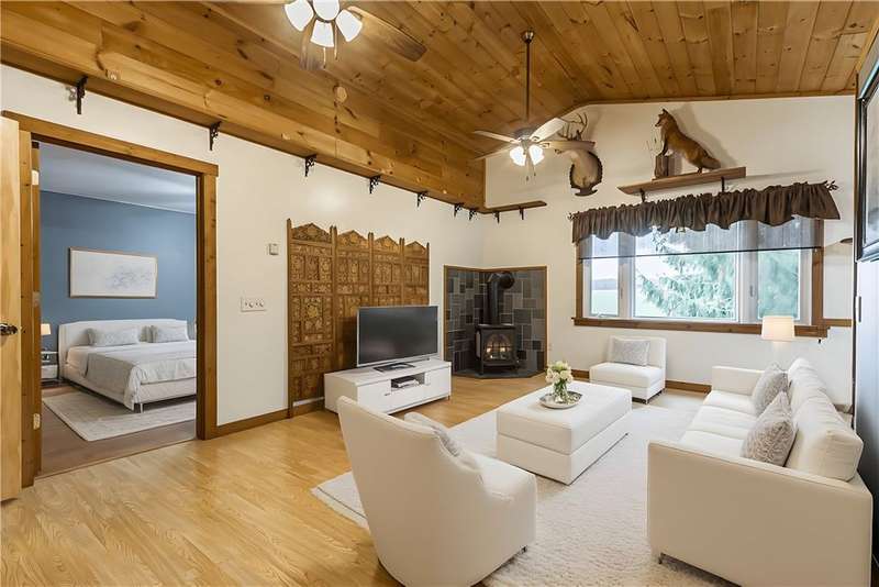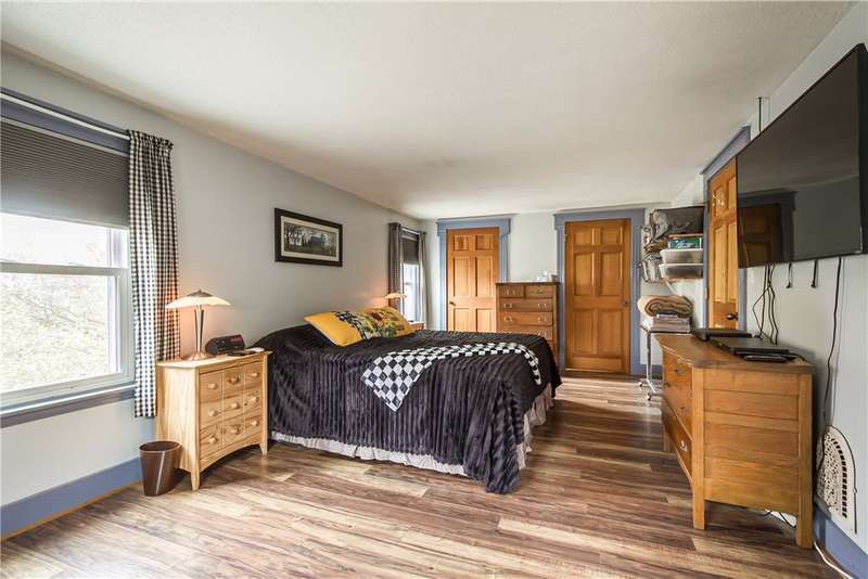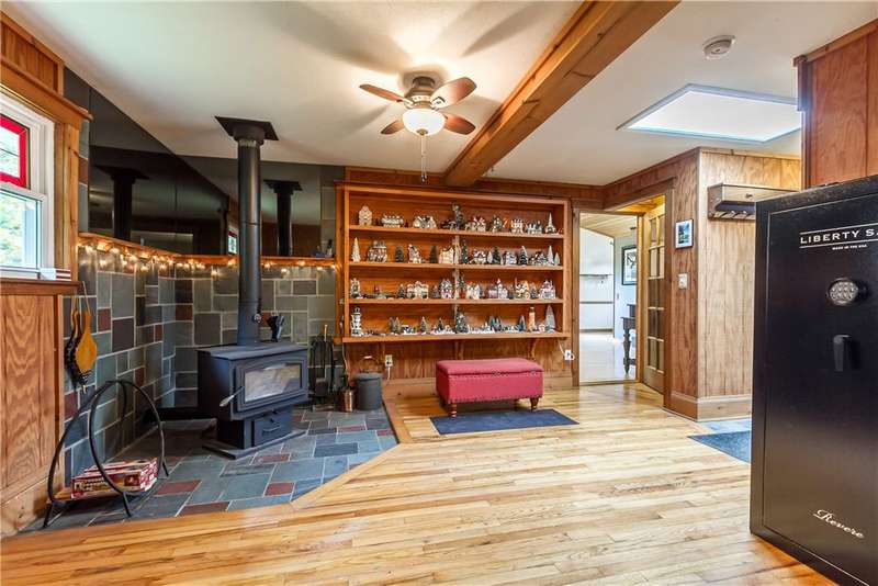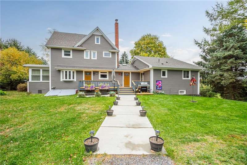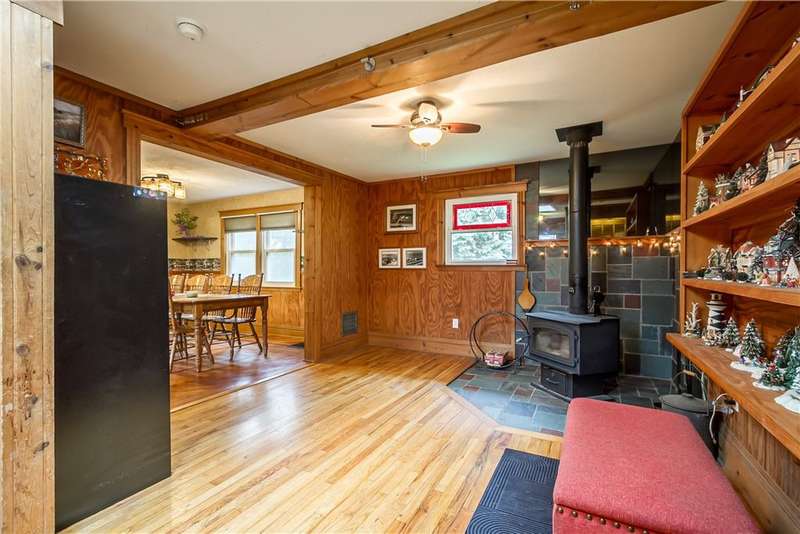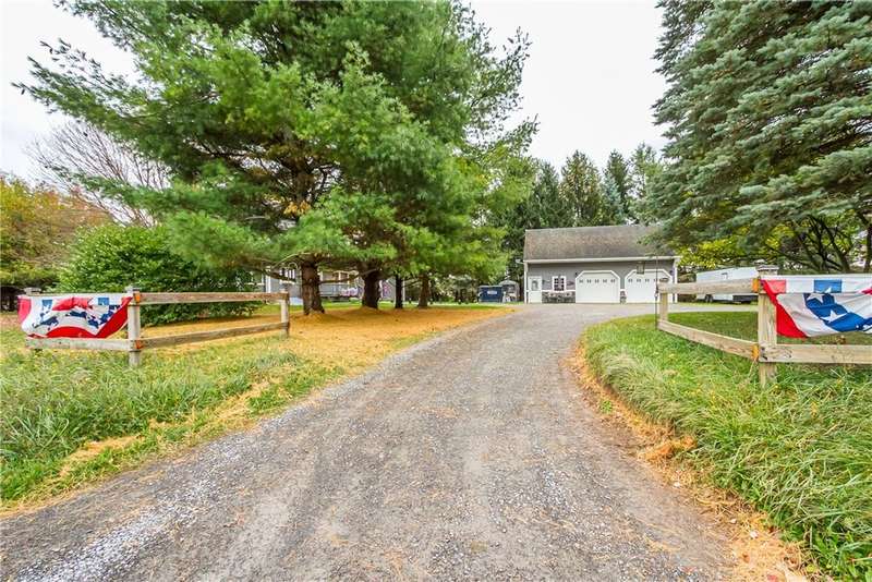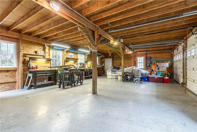 Incredible property with several major updates and versatile space inside and out! Full renovation from the studs in 1990 with all new electric (200 amp), plumbing, insulation, windows, doors, and roof. Impressive 24x36 two-story 3-car garage/workshop with auto bay doors, upstairs storage, and ventilation system. The home features an attached in-law apartment with private entrance, separate heat and electric - updated kitchen and bath, vaulted ceilings, cozy gas stove fireplace, and zoned baseboard heating. Main home highlights include hardwood floors, natural woodwork, large primary bedroom with double cedar closets (convertible to two bedrooms), insulated enclosed porch, and freshly painted finished attic with skylights and storage. Extensive 2025 upgrades: new hot water heater, washer/dryer, side porch decking, beautiful sidewalk, entry doors, bathrooms, and permanently plumbed gas grill. All appliances stay (two kitchens + laundry). Wood stove, 500-lb safe, air compressor, air compressor, and wall-mounted TVs included! Recent infrastructure improvements: new metal roof on porch (2005), new siding/windows (2006), new septic (2007, pumped & inspected 2025), new oil furnace (2020), and $8K whole-house water treatment system with new well & pump (2020). All work done to code with permits! Spacious above-ground pool with Trex deck (2004), newer pump and liner, and patio furniture & umbrellas included! Peaceful private setting on over an acre. Move-in ready and packed with thoughtful updates, storage, and outdoor enjoyment! Delayed Negations - Offers Due Monday 10/27 at 11AM