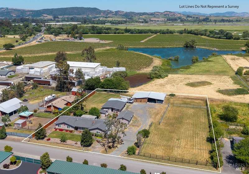 First time on the market! This special Sonoma Valley ranchette has been in the same family for generations and is now ready for its next chapter. Situated on 1.45 acres (two combined lots), this versatile property features include being single-level, ranch-style, offering 3 bedrooms and 2 full bathrooms, plus multiple outbuildings that provides opportunity to a range of uses. Enjoy the flexibility of county zoning ideal for a home-based business, equipment storage, or hobby farm. The charming grounds include a barn with tack room, paddocks, pasture, and feed storage which is perfect for equestrian or animal use. Additional structures include a rec room, party bar, workshop, pump house, and lots of storage, all designed for both work and play. A private well, standard septic system, and peaceful surroundings complete this unique offering. Located in a convenient Sonoma Valley location with space to create, gather, and grow.