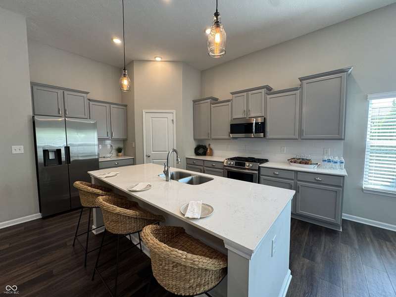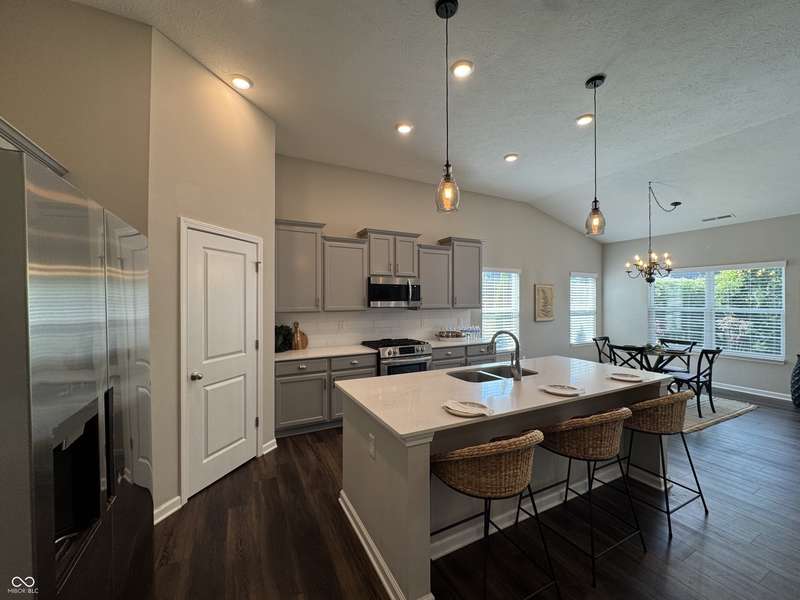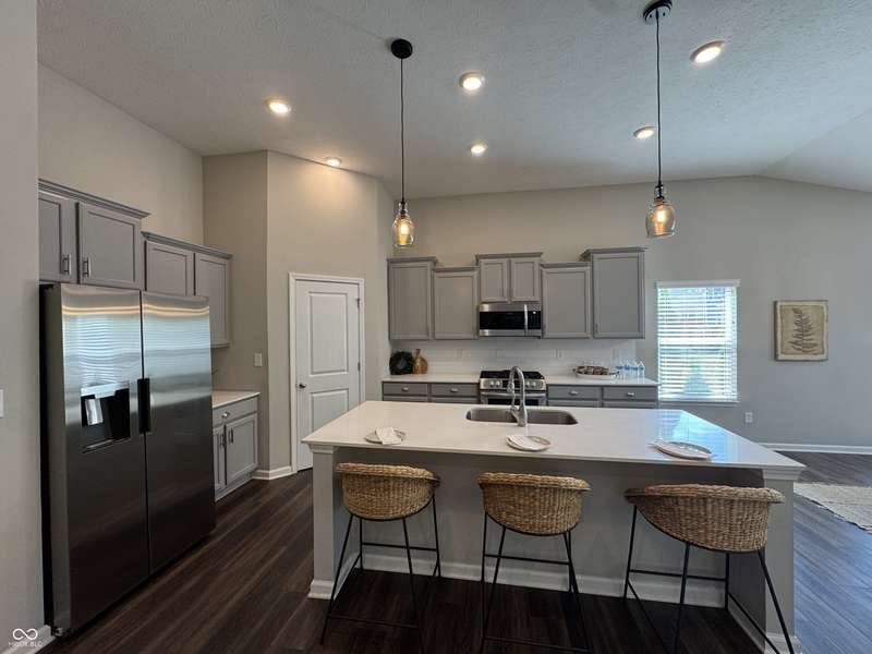Welcome home to this well maintained 3 BR 2 1/2BA ranch with an open floor plan that has soaring ceilings w/ a tremendous amount of natural light. You will love the gourmet kitchen. Stainless appliances, large island, solid surface tops & a large walk in pantry. Main level primary has walk in closet, garden tub & sep shower. The additional bedrooms are generous in size w/ walk in closets. You will love the upstairs Family Room for the extra space. Oversized garage with a bump & tandem space. Home has solar. Electric bills are extremely low $15-$70. This is a golf cart community. Close to parks, golf, shopping etc.. The rear of the property goes on past the trees in the backyard. Avg Elec Bill is $33 a month!