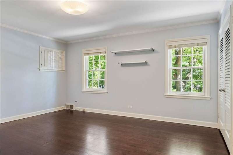 The perfect Halloween block to trick-or-treat on as this storybook Cape Cod set on enchanting Apple Tree Road complete with that magical sidewalk to Crow Island School offers timeless comfort in a very special nook! Nestled on a lush half-acre lot with mature trees, a circular drive & attached 2-car garage accented by plantation shutter windows, this home radiates charm with fantastic curb appeal. Inside, the formal entry opens to a cozy wood-paneled office with a bay window overlooking all everyday activity. A sun-filled four-seasons room flows seamlessly into the inviting living room with marble surround where oversized windows frame panoramic views of the huge backyard. The central dining room connects the home's entertaining spaces, leading to the oversized family room with custom built-ins, WBFP and expansive floor to ceiling sliding doors to the entertaining patio & backyard oasis. The front-facing Chef's kitchen keeps you connected to the comings & goings of this special street, featuring granite c-tops, custom cabinetry, s/s appliances & island with breakfast bar seating. Eat-in dining space is ripe to be opened to family room for an open concept dining to great room. A second office/guest bedroom off the mudroom with laundry provides flexibility. Expansive 2nd floor with primary suite overlooking the lush backyard & boasts a walk-in closet with spa bath. Two additional bedrooms share a hall bath, while a fourth bedroom w/2nd staircase down is ideal for guests or an au pair. The lower level offers abundant recreation space, ample storage, and 2nd laundry room. Perfectly positioned steps to Crow Island, New Trier, and Loyola, this home delivers on location & North Shore lifestyle. Warm, welcoming, and brimming with even more ways to bring this home to a new level of luxury, 180 Apple Tree Road is ready for a touch of 2025 designer vision as you are already in the most premier A plus location as it's all here!