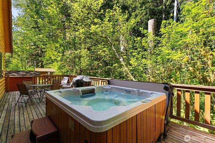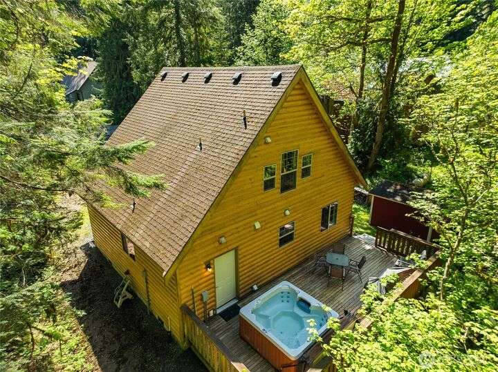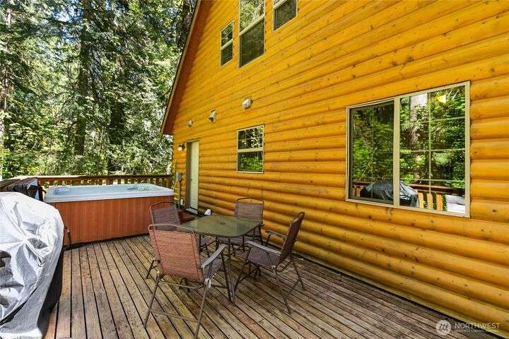 Welcome home to your log cabin in the gated Mt. Baker Rim community! This 2-bedroom, loft, 2-bath home comes turnkey for renting, fully furnished including the kitchen. Cozy up to the gas fireplace. Updates include a private hot tub on the rear deck, new deck railing and rolling entrance door, replaced wall heaters, re-insulated crawl space with piping and metal lid, new stove/range, dryer, ceiling fan, and interconnected smoke alarms. Just 30 minutes to Mt. Baker! $1,025 annual HOA includes pool, sauna, clubhouse, tennis courts, picnic/play areas, snow removal, and full-time management. Fiber optic service coming 2025. 1% lender credit(up to $7500) offered through my preferred lender, AmyBaker@movementmortgage
