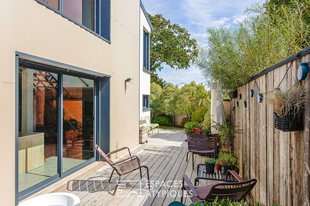 The second bedroom is distinguished by its volumes developed on three levels. The first is allocated to the sleeping area and the office, the second to a creative play area and storage. Then the mezzanine completes this cleverly designed space that will delight young and old alike. A bathroom with designer touches completes the unique features of the upper floor. Outside, an intimate south-facing terrace allows you to enjoy the central yet calm environment of this pleasant neighborhood where life is good, close to transport and roads, a few minutes from the seaside. A favorite and an exceptional house for design lovers.