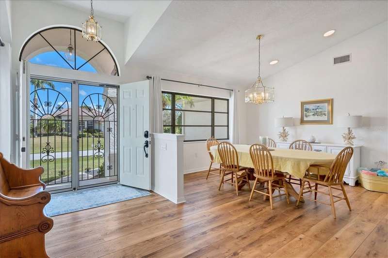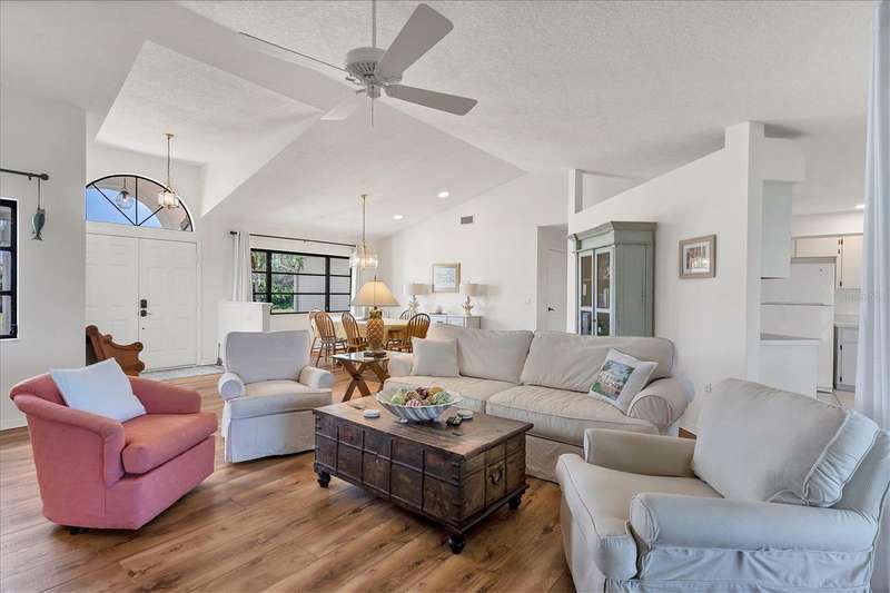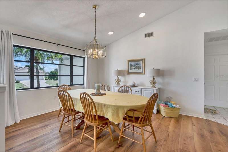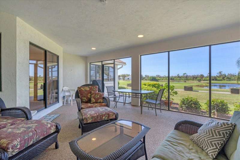 Enjoy a breathtaking golf course and water view from the large screened lanai and nearly every room in this immaculate and renovated home in Cape Haze Windward. The prime location on a exquisite street, the property provides vistas of multiple golf course holes and long views of three large lakes. The 3 bed, 2 bath home has a 2023 concrete flat tile roof, an open floor plan, large kitchen, an abundance of natural light, stunning wide luxury vinyl plank flooring, renovated guest bath, and new bedroom carpeting. The property is newly painted inside and out, and has beautiful manicured landscaping. The pristine neighborhood of Cape Haze Windward offers the charming Cape Haze Links golf course, generous Association greenbelt spaces, and canals and large Coral Creek estuary to enjoy. Walk to Association Kayak launch or boat over to private beach Walk, bicycle or golf cart to the Publix shopping center that includes all the essential shops. Just minutes to historic Boca Grande, miles of serene sandy beaches, three full service marinas, world-class fishing and boating, and numerous public and private golf courses.