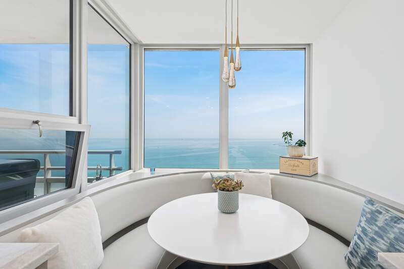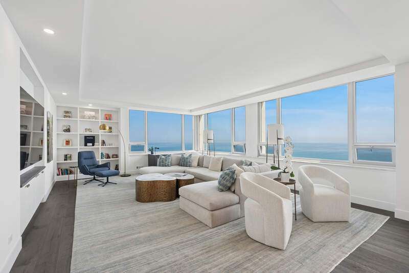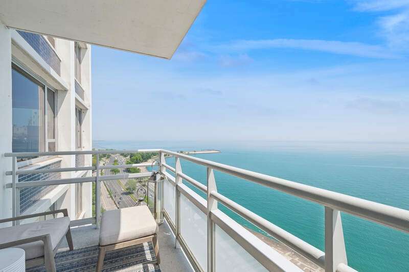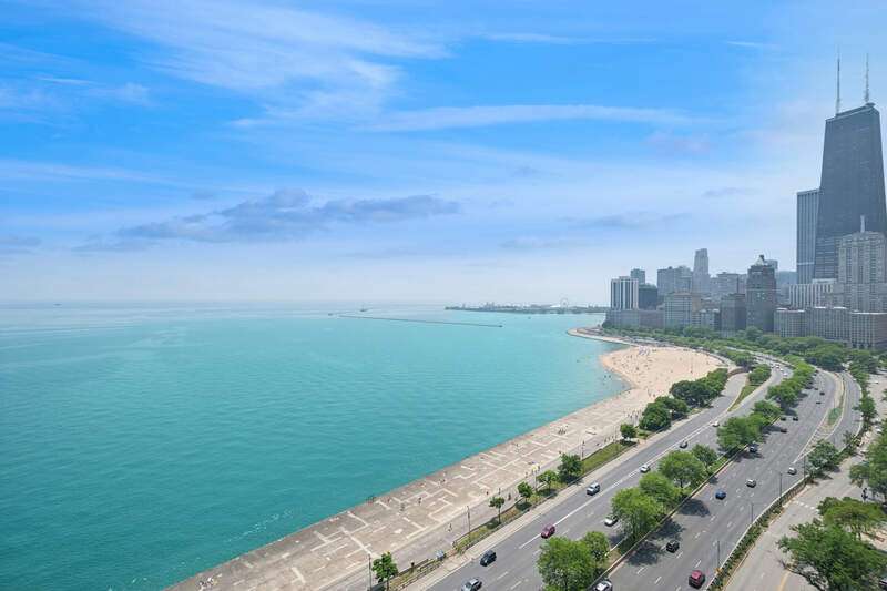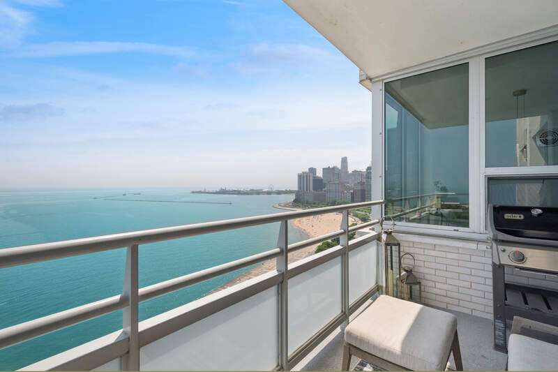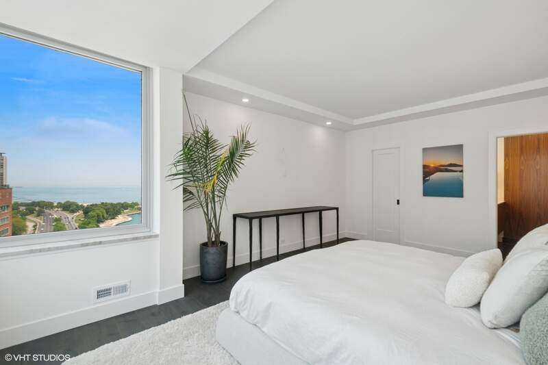 Santorini Serenity in the Heart of Chicago. Step from the private elevator entry foyer into an airy sanctuary of crisp white walls and custom gallery lighting-perfectly curated to highlight artwork in every room. Wake up to breathtaking sunrises and expansive lake views facing east and north, and city views from the west. From your private balcony, take in unobstructed views stretching from North Avenue Beach to the John Hancock Center, Oak Street Beach, and Navy Pier. Catch Chicago's iconic lakefront fireworks on Wednesdays and Saturdays. This one-of-a-kind home features oversized rooms throughout. A massive living and dining area, ideal for entertaining, opens to a peaceful balcony with space to grill and unwind. Each of the three generously sized bedrooms accommodates a king bed and includes custom built-in closets. No detail was spared in the brand new, full renovation; rich dark walnut and marble flooring throughout, custom soffits and integrated lighting, chef's kitchen with built-in breakfast nook, luxe spa inspired bathrooms, in-unit laundry, all-new plumbing and electrical systems, dual-zone Nest-controlled HVAC. Reside in one of Lake Shore Drive's most impeccably maintained and service-oriented buildings, offering all of the amenities; 24-hour door staff, indoor pool and spa, fitness center and party room. Valet parking for all vehicle sizes (fee per space), FREE unlimited indoor guest parking. Two additional storage spaces. Move in and start enjoying everything this lake front home has to offer.