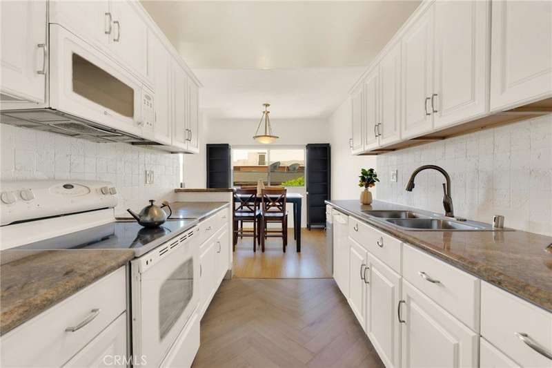 Welcome to this beautifully maintained and light-filled 1-bedroom, 1-bathroom condo located in the heart of Encino. Offering 731 sq ft of comfortable living space, this charming unit features an open and inviting floor plan with laminate flooring, central AC, and ample storage throughout. The spacious living room opens to a private balcony overlooking the peaceful, landscaped courtyard—perfect for relaxing or enjoying your morning coffee. The galley-style kitchen is equipped with granite countertops, clean white cabinetry and well-kept appliances. The generously sized bedroom offers a deep walk-in closet, while the full bathroom is clean and well-appointed. This well- maintained community offers resort-style amenities including a sparkling pool, spa, gym, and secure entry. One covered parking spot and extra storage are included. Don’t miss this rare opportunity to own a stylish top-floor corner unit in one of Encino’s most desirable neighborhoods!