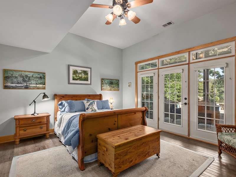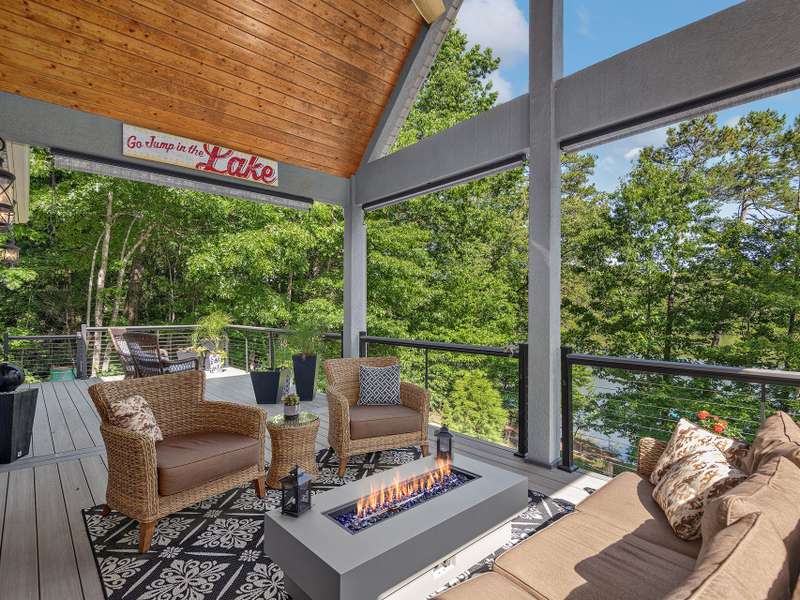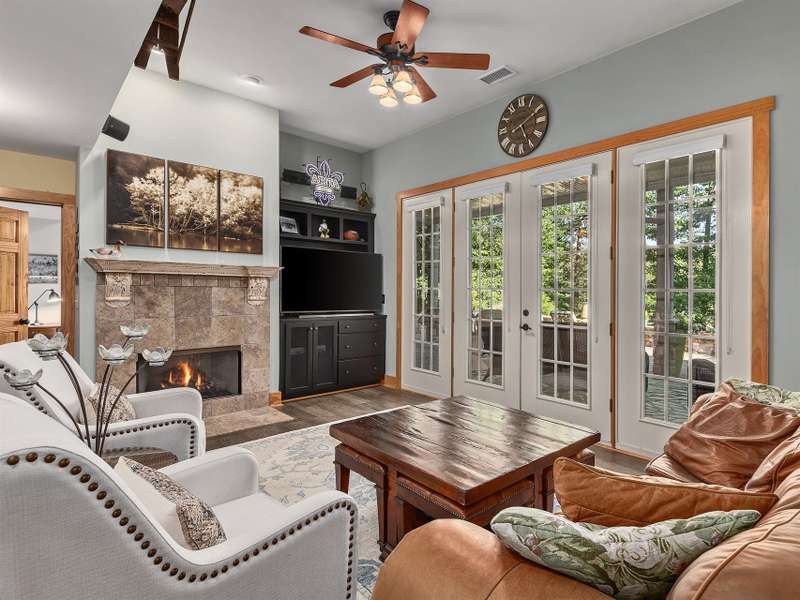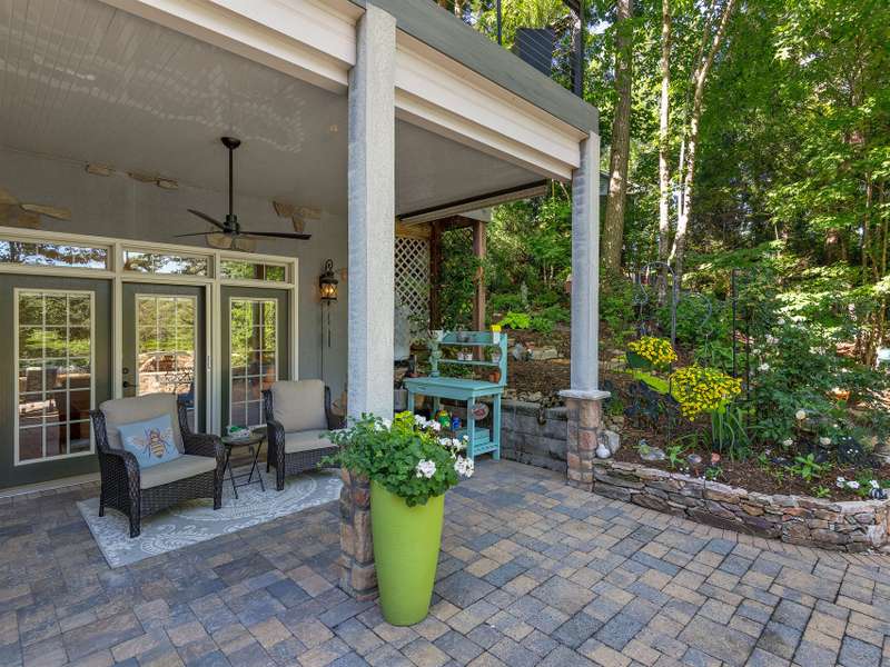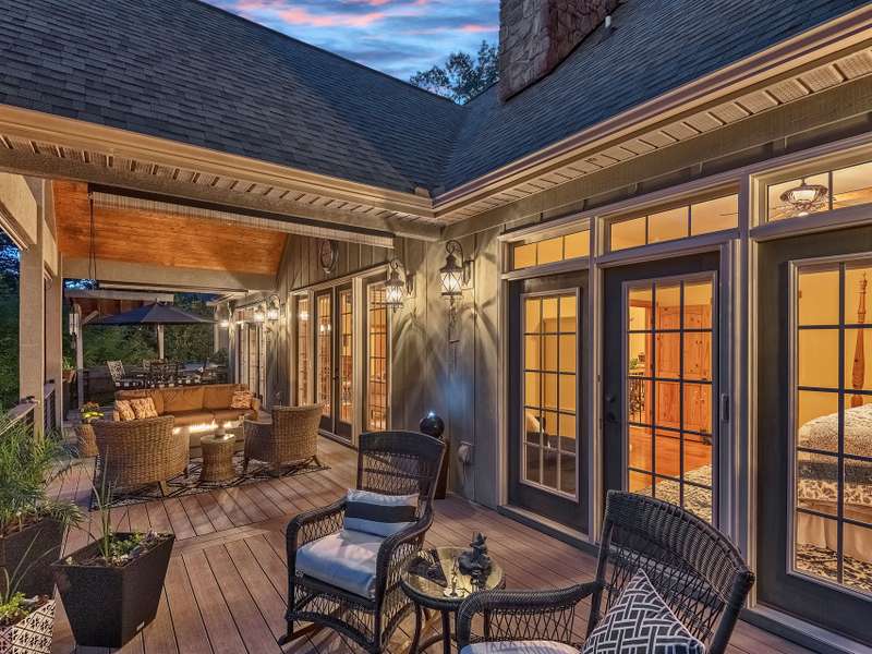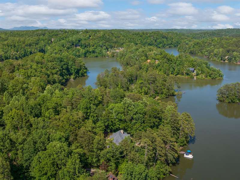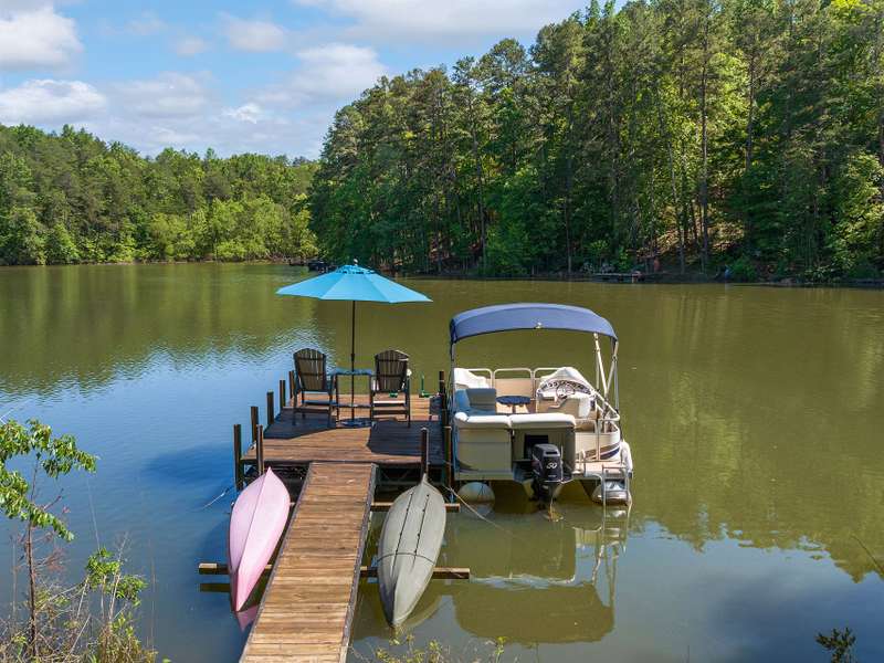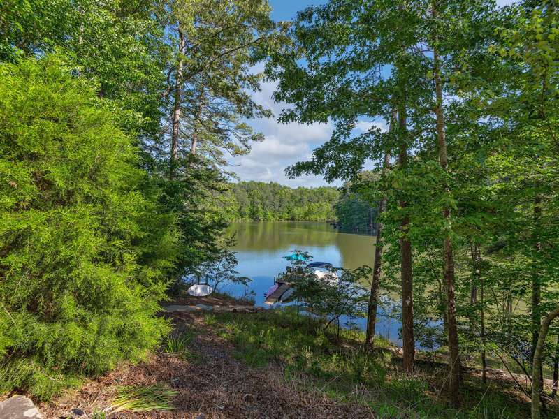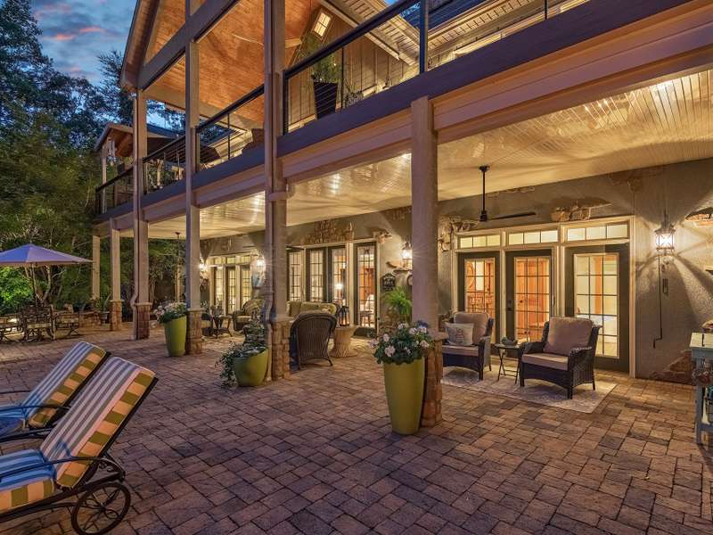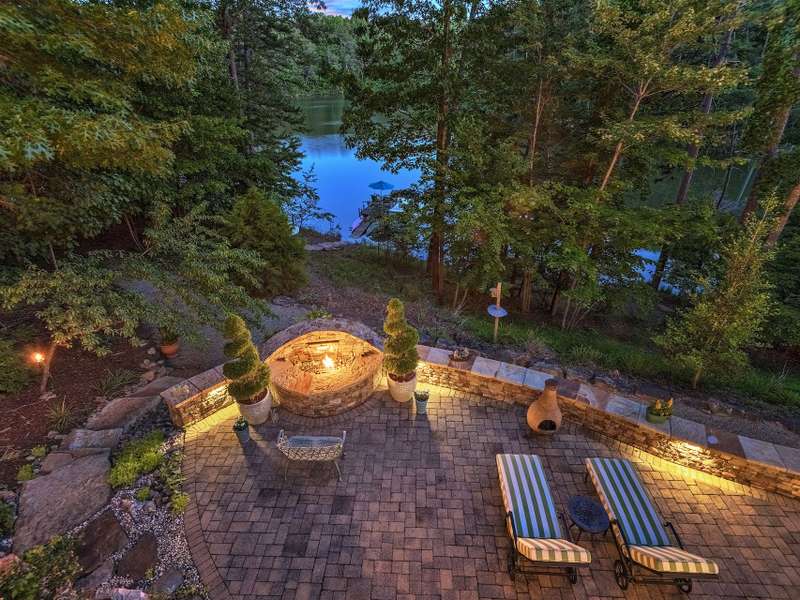 Nestled on the serene shores of Lake Adger, this exceptional stone-accented home offers an unparalleled blend of comfort, style, and natural beauty. Immediate upon entry, one is welcomed by an impressive great room featuring vaulted wood ceilings, a woodburning fireplace, and extensive views of the serene lake. The open-concept design connects the kitchen, dining, and great room adjoining the lakeside deck. Warm wood accents enhance the sophisticated rustic charm throughout. The main level also boasts a spacious lakeside primary ensuite, providing a private haven of relaxation. On the lower level, you'll find a versatile family room, two inviting guest suites, a dedicated office space, and an expansive lakeside patio that features a cascading water feature and firepit,perfect for entertaining or unwinding under the stars. Outdoor living is redefined with thoughtfully designed stone walls and walkways that embrace the lakeside charm. Welcome to your dream lakefront retreat!