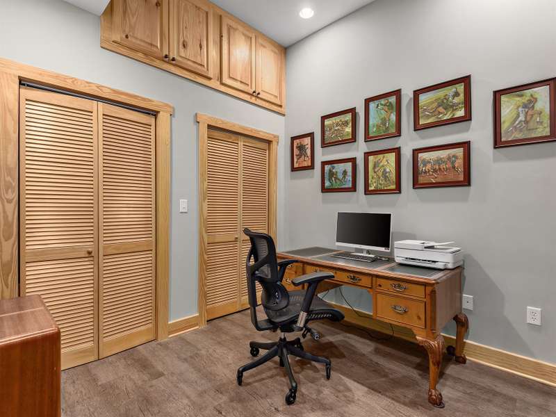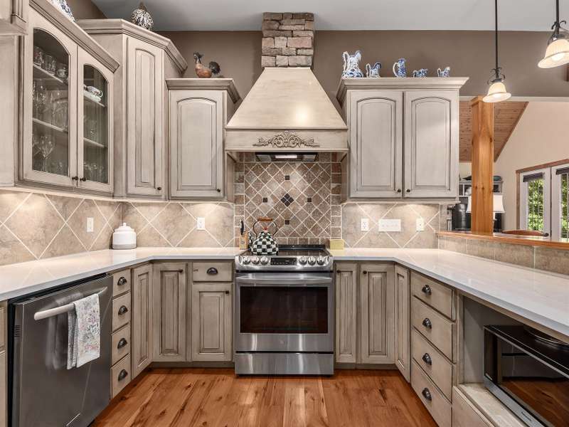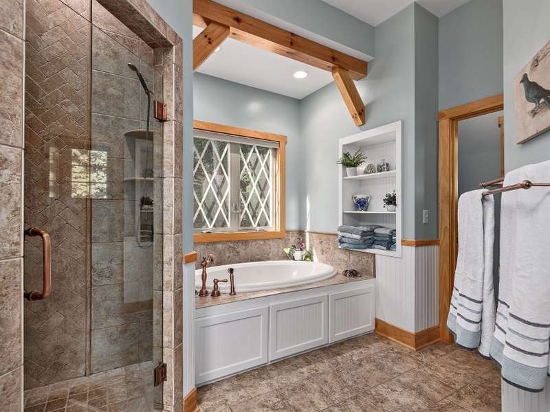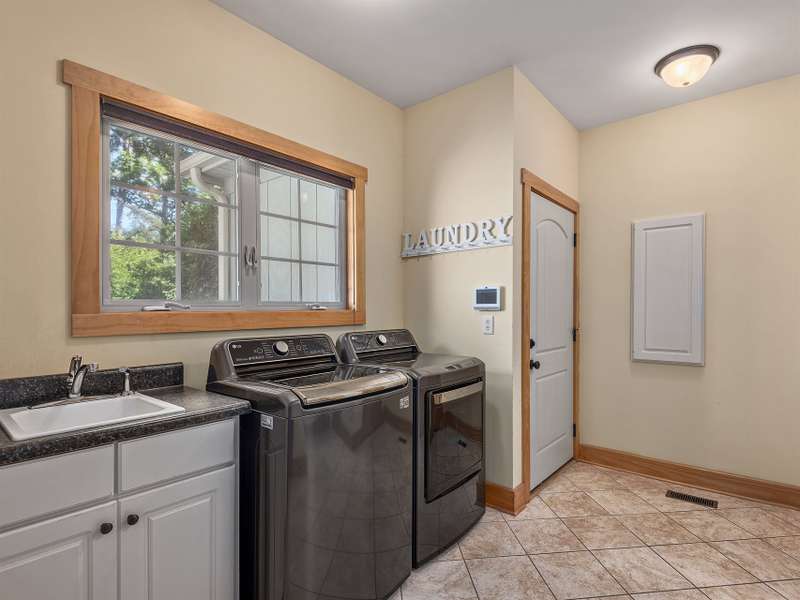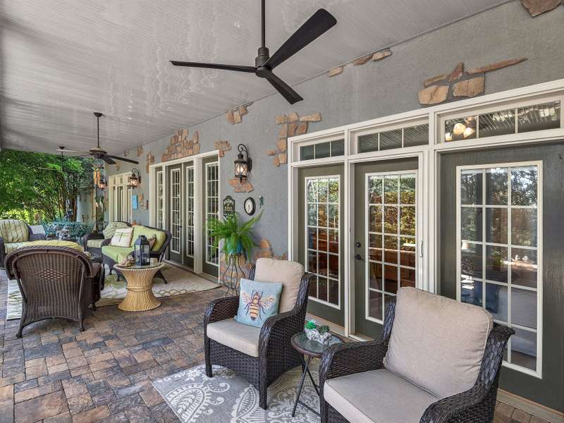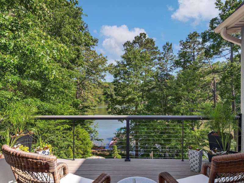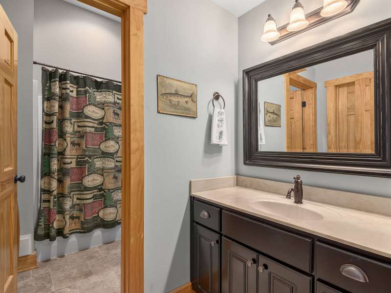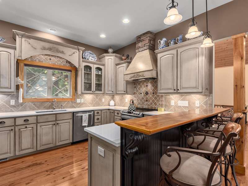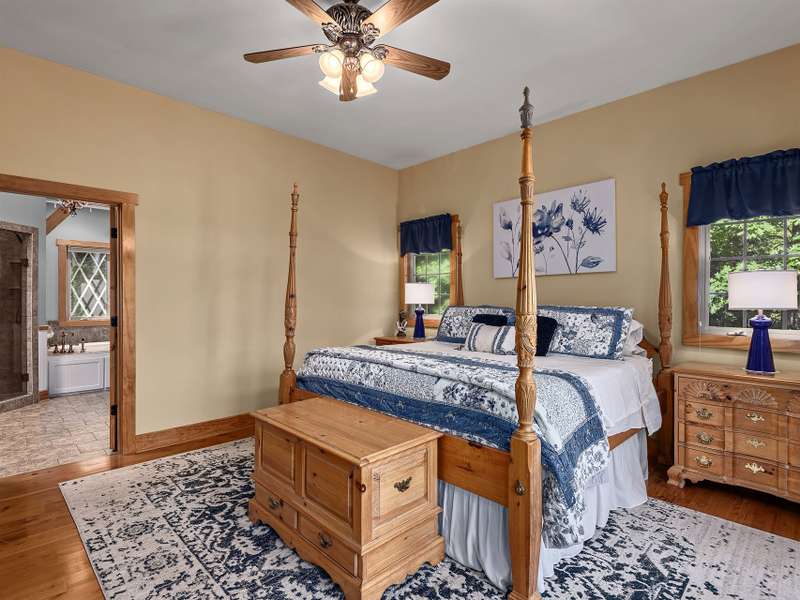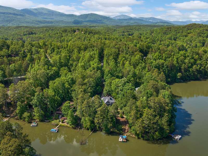 Nestled on the serene shores of Lake Adger, this exceptional stone-accented home offers an unparalleled blend of comfort, style, and natural beauty. Immediate upon entry, one is welcomed by an impressive great room featuring vaulted wood ceilings, a woodburning fireplace, and extensive views of the serene lake. The open-concept design connects the kitchen, dining, and great room adjoining the lakeside deck. Warm wood accents enhance the sophisticated rustic charm throughout. The main level also boasts a spacious lakeside primary ensuite, providing a private haven of relaxation. On the lower level, you'll find a versatile family room, two inviting guest suites, a dedicated office space, and an expansive lakeside patio that features a cascading water feature and firepit,perfect for entertaining or unwinding under the stars. Outdoor living is redefined with thoughtfully designed stone walls and walkways that embrace the lakeside charm. Welcome to your dream lakefront retreat!