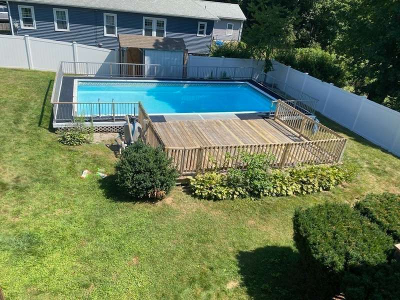 Location! Minutes to all amenities, commuting routes, and highly sought after schools! This nearly 2,600 sq.ft, beautifully maintained Colonial with 4 bedrooms, 2.5 baths, is an entertainer's dream! Enjoy family and friends in the large family above the garage that comes with a built-in bar, beverage fridge and 75"wall mounted TV! The sliding glass door leads to a balcony with views of the newly fenced in (2024) backyard, recently stained decks (2025) and full-sized swimming pool! All bedrooms are upstairs with the primary bedroom featuring a walk-closet as well as an en-suite bathroom that includes a walk-in tiled shower, double sink vanity, and linen closet. The other three bedrooms have access to an updated full bathroom and newer carpet (2024). Access to the two-car garage thru the tiled mud room offer a refrigerator. Don't let this one pass you by, schedule your showing today! Seller's VA mortgage is assumable if the buyer qualifies