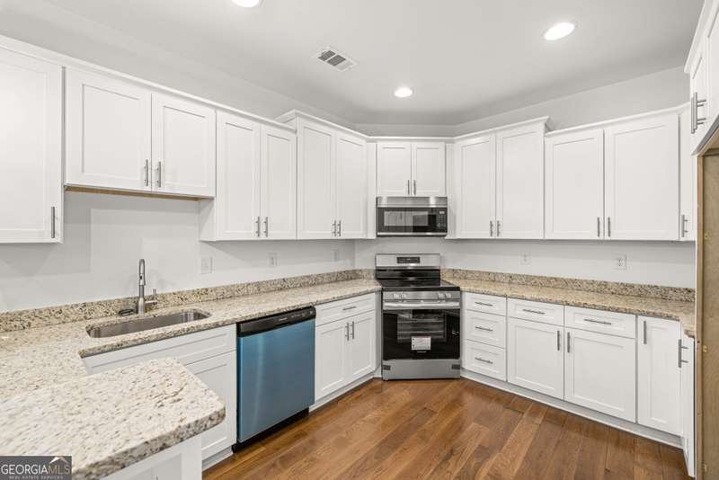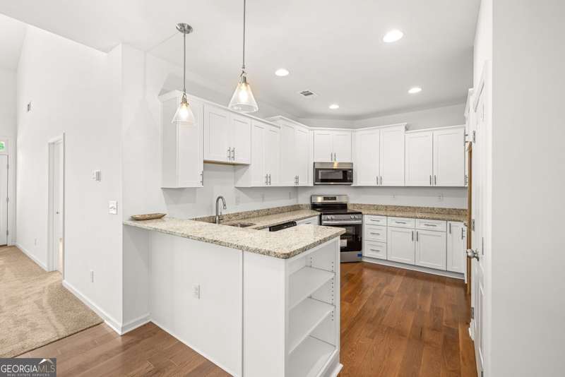 Here's a wonderful opportunity to own your beautifully renovated home in the established, quiet community of Sandridge Commons at Lake Lanier! This large, end unit, townhome with high ceilings and lots of storage, includes a welcoming entry with wood floors, a half bath, and convenient laundry room. The kitchen features all new: wood floors, cabinets and granite countertops, along with a farmhouse sink, and appliances with views to the family room and separate dining room. The spacious family room includes a soaring, vaulted ceiling, new carpet, and an electric fireplace where you'll enjoy cozy mornings and evenings. Located just off the family room, your primary bedroom with new carpet, a walk-in closet, and ensuite with granite countertops is a welcome retreat. NEW ROOF (Oct. 2025) and freshly painted exterior (Nov. 2025). Outside, and just off the family room, you'll enjoy an intimate patio with a privacy fence, perfect for entertaining. Upstairs, you'll find 2 spacious loft areas perfect for an office, study, or warm, library area. A second large bedroom has 3 closets, with one being a walk-in. This bedroom, and a third bedroom with a large walk-in closet, will share a large bath with an additional clothes closet and a linen closet. You'll enjoy being close to Lake Lanier, easily accessed by nearby Thompson Bridge Park, shopping, dining, and the downtown square with all combining for an active and enjoyable lifestyle. Call today for your private tour!