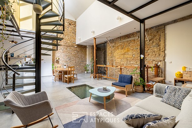 Located in the second arrondissement of Lyon, in the heart of the Ainay district, this 197sqm loft (123sqm Carrez law) is located in the backyard of a bourgeois building. Built from the renovation of a former photo studio, it has been completely redesigned and renovated by an architect.