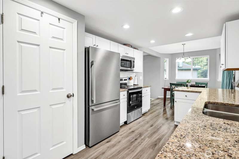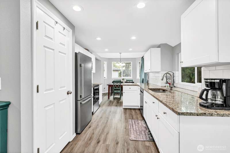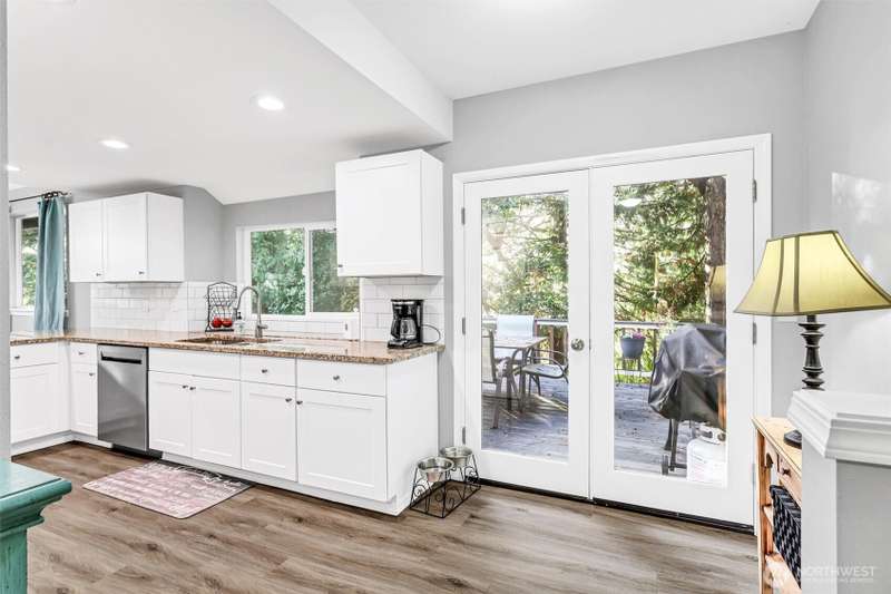 Welcome to this beautifully updated 2-story home with a daylight basement featuring 3 bdrms, a den, and 2.75 baths. The spacious living rm flows into a stunning kitchen w/ granite counters, undermount sink, full-height tile backsplash, stainless appliances & a pantry closet. Enjoy newer LVP flooring throughout the main level. The daylight basement offers a large bdrm, den, ¾ bath, laundry, and storage. The primary suite includes a full bath, dual walk-in closets & abundant storage. All baths are updated, and the lg 3rd bdrm features a charming window seat. Enjoy a large deck, patio, fully fenced yard, circular driveway & 1-car garage. Updated heat/AC with mini splits in the living room & primary bdrm. Access to community park & boat launch!