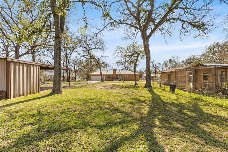 Welcome to your charming 3-bedroom, 2-bath home in the heart of Whitney, TX on almost 2 acres. Step inside and be enveloped in the gorgeous natural light that streams through the abundance of windows throughout the home. With a spacious kitchen complete with a gas range, ample counter and storage space that opens up to the bright and airy living room, you will enjoy entertaining guests or small intimate gatherings! Generous sized bedrooms with the home's gorgeous original wood floors each member of your household can enjoy the charm and character of this special home! Discover the perfect blend of natural beauty and open space on this recently cleared acreage, thoughtfully prepared to highlight the stunning mature trees and create an ideal setting for outdoor activities. Additionally, the outside storage unit, chicken coop, and garden space provide ample opportunities for hobbyists and outdoor enthusiasts alike. Just moments from the sparkling waters of Lake Whitney, you'll love taking advantage of all the recreational amenities of fishing, boating and relaxing this area has to offer.