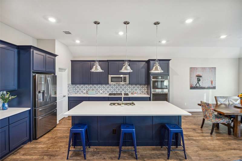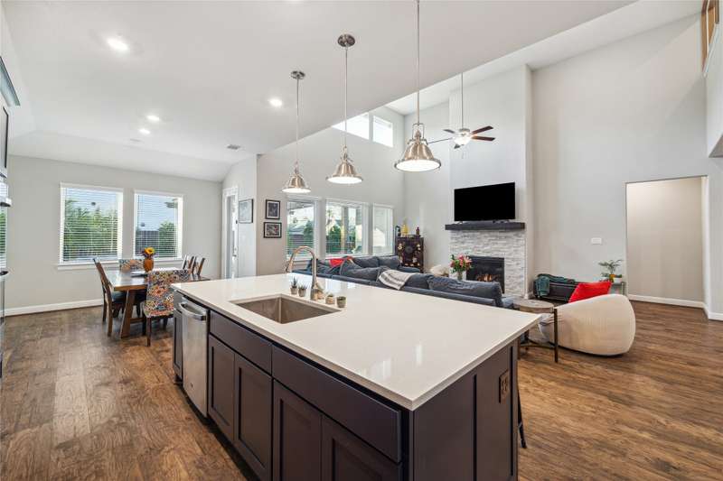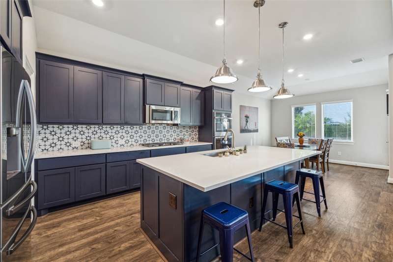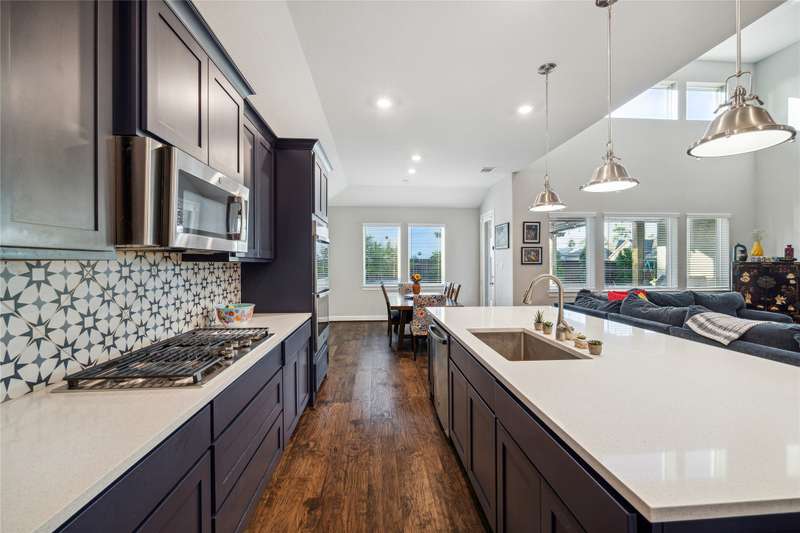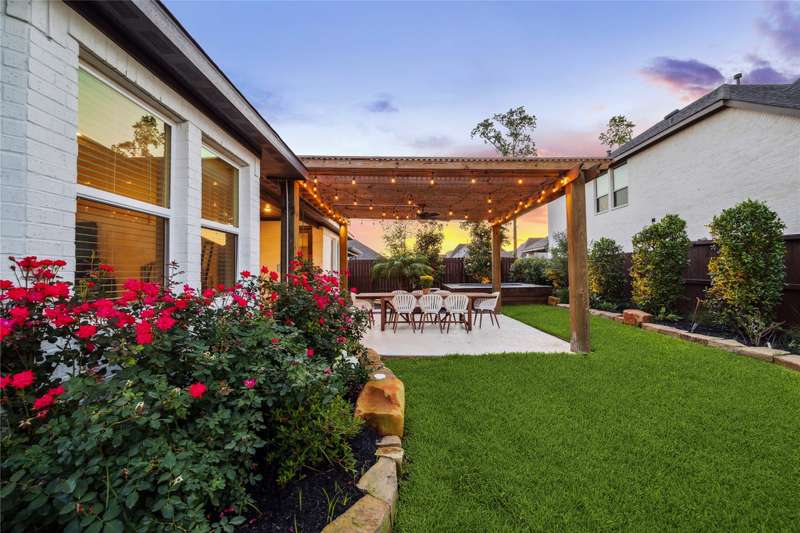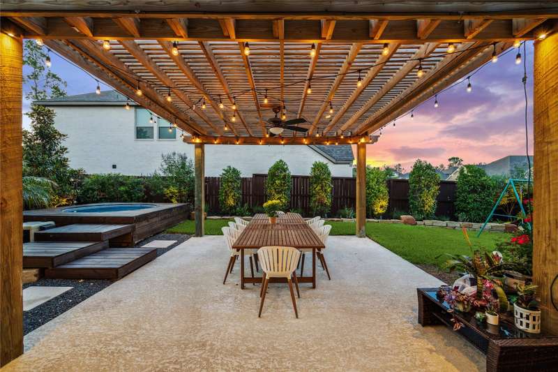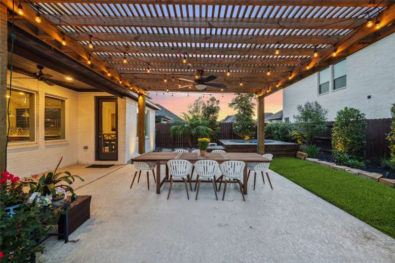 Welcome to this stunning 5-bedroom home (with an optional 6th bedroom/home office) offering over 3,400 sq ft of thoughtfully designed living space. Built by Shea Homes in 2022 and situated on a desirable corner lot, this property seamlessly blends modern comfort with timeless style. The open concept floor plan invites connection, making it ideal for entertaining and everyday living. The spacious kitchen flows effortlessly into the dining and living areas, perfect for hosting family and friends. Step outside into your private backyard oasis, complete with mature landscaping, ambient accent lighting, and a unique "cowboy pool" surrounded by a custom multilevel deck, just the right spot to cool off on warm days or unwind in the evening. Directly across the street, enjoy the serene neighborhood green space filled with native plants and mature trees. Take a walk along the winding trails or relax in an Adirondack chair as the sun sets.