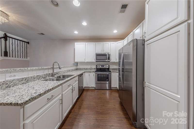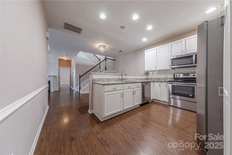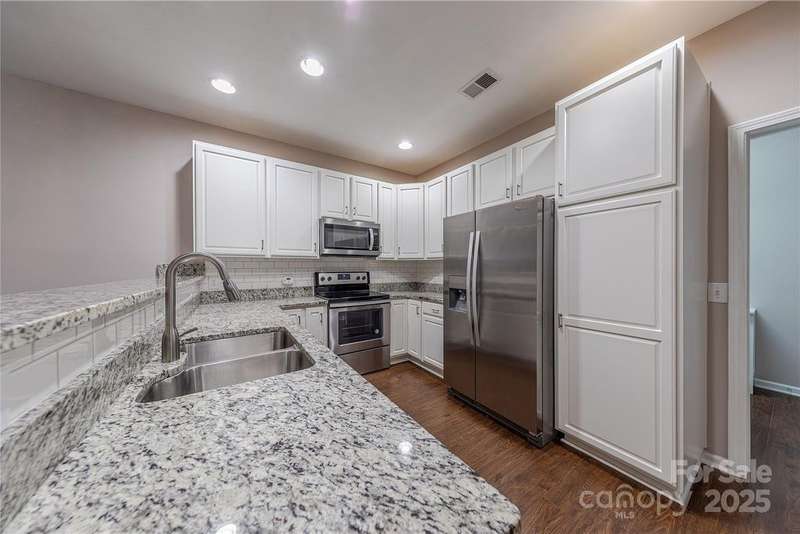 Back on Market! Welcome home to this beautiful home in Southbrook Villas walking distance to Blakeney Shopping center. Situated on a corner lot this unit has the perfect curb appeal. Inside you will find an open great room with vaulted ceilings looking above to the second story. Charming gas fireplace and luxury vinyl plank flooring throughout the main level make this the perfect updated space for relaxation or entertainment. Primary bedroom features a sitting area and updated ensuite bathroom. Second bedroom presently used as an office features access to the main floor full bathroom and the covered patio. Kitchen is open and bright with white cabinetry, granite countertops and stainless steel appliances. The gorgeous iron spindle staircase guides you to the second floor where you will find an oversized loft, third bedroom with ensuite bathroom, office/flex space and oversized attic storage. You do not want to miss this one!