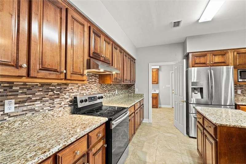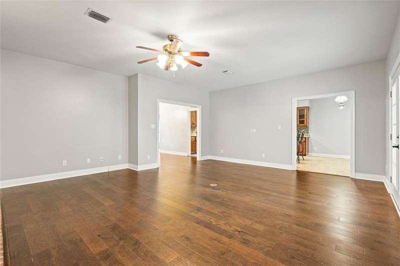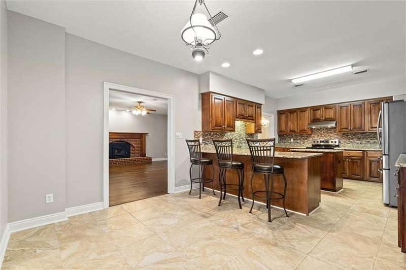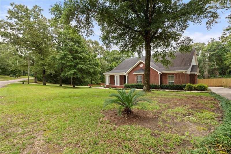 Welcome to this lovely Southern-style home situated on over an acre of peaceful property in the highly sought-after Saraland School District. With approximately 2,800 square feet of living space, this 3-bedroom, 2.5-bath home offers plenty of room to spread out and enjoy comfortable living. A large, inviting front porch sets the tone as you step into the spacious foyer, where beautiful wood floors flow throughout the home. Just off the entry is a versatile room that can serve as a home office, study, or even a potential 4th bedroom. The cozy living room features a wood-burning fireplace insert-perfect for those cool evenings. The kitchen is a chef's dream, complete with custom wood cabinetry, granite countertops, a large island, wrap-around bar, and stainless steel Samsung appliances. The open-concept layout flows into a flexible space that can be used as a family room or dining area to suit your needs. Enjoy quiet mornings or relaxing evenings on the oversized, screened-in back porch-ideal for sipping coffee or entertaining guests. The spacious primary suite includes a walk-in closet and a private en-suite bath with dual vanities, a soaking tub, and separate shower. Two additional bedrooms are connected by a convenient Jack-and-Jill bathroom, offering privacy and functionality. Additional features include two separate driveways-one leading to a two-car garage and the other perfect for guest parking-an all-electric setup, a new HVAC system installed in 2024, and a roof replaced in 2019 according to seller. (all improvements per seller) Don't miss your chance to own this beautiful, well-maintained home-schedule your showing today!! All measurements are approximate and not guaranteed, buyer to verify.