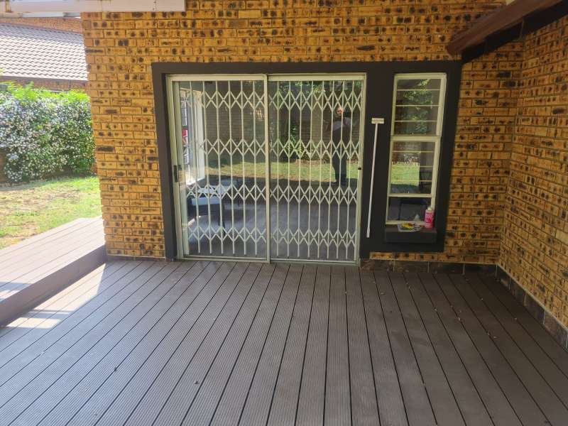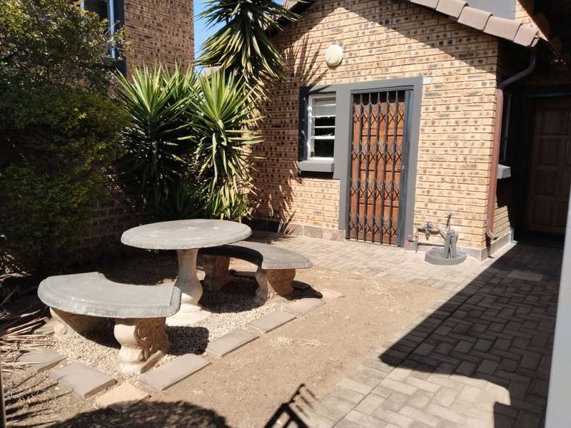 3 Bedrooms, 2 bathrooms,( 1 M.E.S.) Lounge, dining room, Kitchen. Patio, Double garage. 1 Open parking. This lovely townhouse is for sale in a small, exclusive complex of only seven units. It features 3 sunny bedrooms and 2 bathrooms, with the main bedroom being en-suite. The home includes a modern kitchen with granite tops, a separate dining room, and a lounge. Enjoy a private, pet-friendly garden and a covered patio. This low-maintenance face-brick property also offers a double garage and additional parking. Please call us to arrange a viewing.