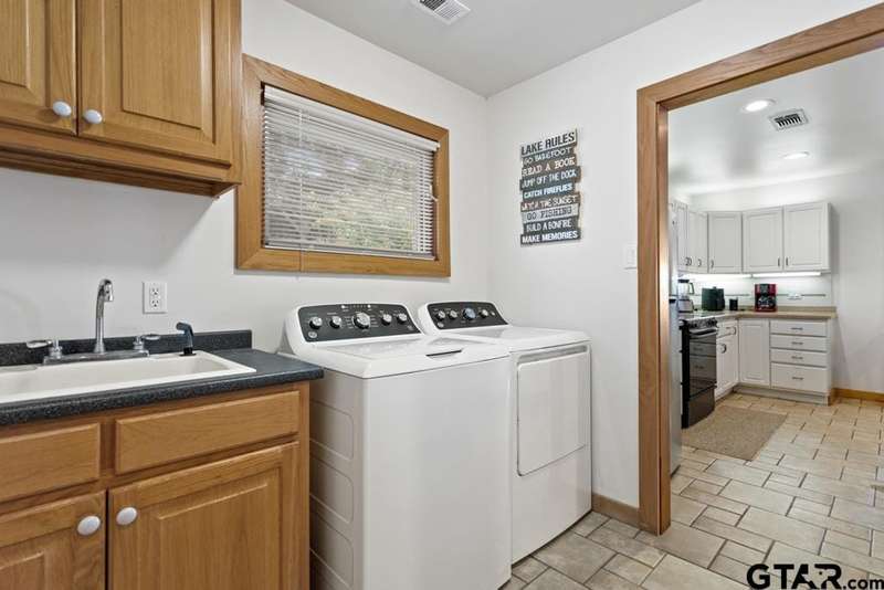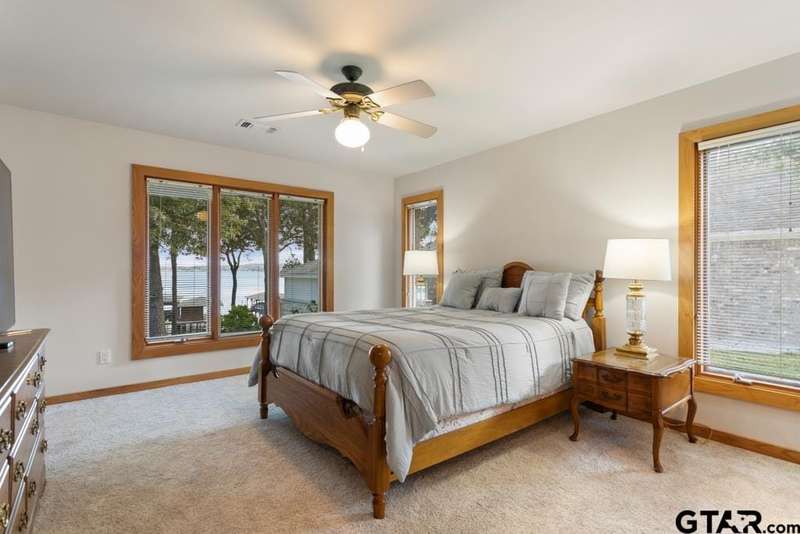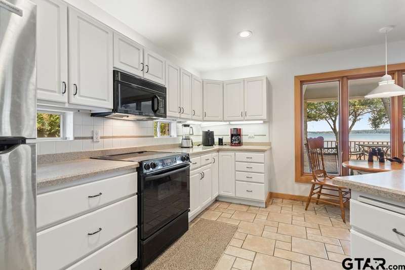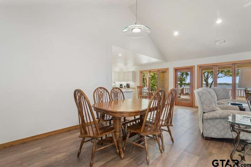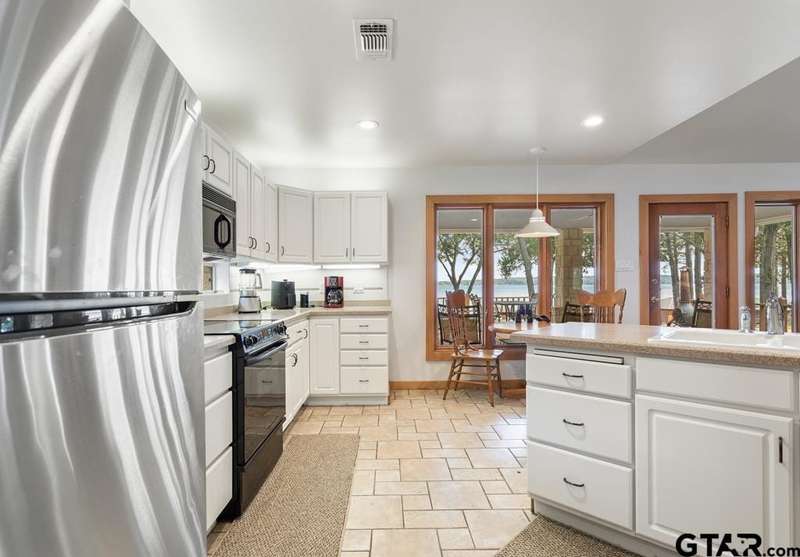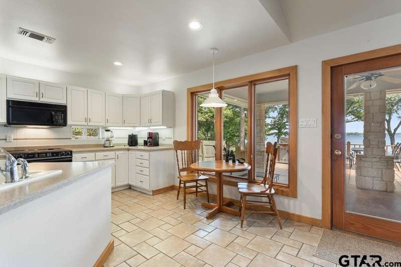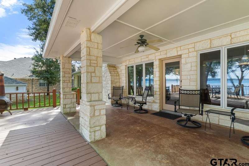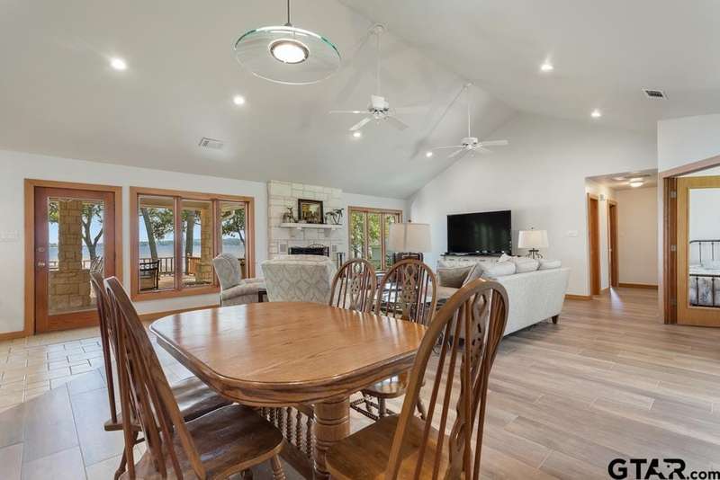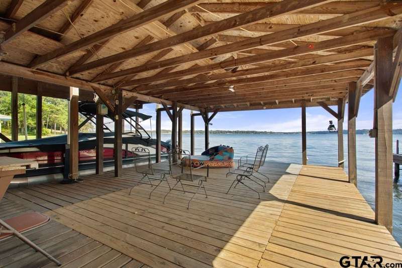 Secluded cul-de-sac setting on Lake Palestine offering peaceful waterfront living in a quiet, gated neighborhood with stunning open-water views. This classic single-level home features just under 2,000 sq.ft. with 3 bedrooms, 2.5 baths, and an inviting open family room showcasing a stone fireplace, vaulted ceilings, and recessed lighting. The spacious kitchen and dining area flow seamlessly to the outdoors, where a large covered patio extends to an expansive deck overlooking the deep waters of the lake'perfect for relaxing, grilling, or entertaining. Recent improvements include a new roof in 2024 and a new bulkhead/retaining wall completed in 2021 for added peace of mind. The property also includes a two-stall boathouse'one stall is currently decked over for additional outdoor living space but could easily be reopened to accommodate a boat or jet skis. Whether you're seeking weekend retreats or full-time lakeside living, this property offers an incredible opportunity to enjoy lake life with exceptional views and a private, tucked-away feel'yet still convenient to town. Located approximately 20 minutes from Tyler, close to shopping, dining, and medical facilities.