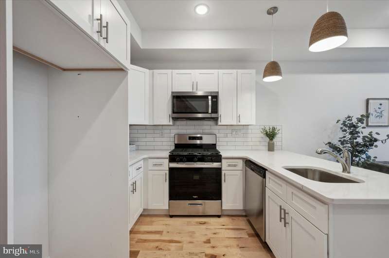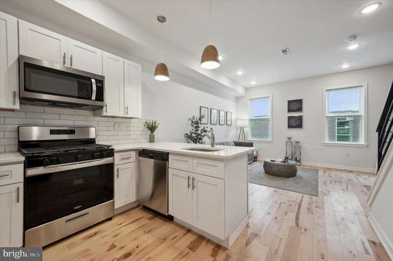 Investors and househackers, listen up! This stylish, recently renovated and expanded duplex in a booming section of Belmont is the definition of a smart purchase. The historic brick-front facade has been respectfully updated with new iron rails and second-story sconces, and this tasteful combination of old-meets-new carries through to the common entryway with large transom window, exposed brick wall and starburst cement tile floor. Both units have great outdoor space, high ceilings with recessed lighting, gorgeous natural light and new maple floors throughout. The spacious bilevel unit is the likely choice for an owners unit. Up the private stairs with an exposed brick wall and custom iron railings is the open-plan main living space, where a large living room and U-shaped kitchen are tied together with a beadboard breakfast bar with jute pendant lighting. The kitchen is finished with elongated subway tile backsplash, subtly-veined granite countertops with undermount sink and pull-down faucet, and stainless steel appliances including a five-burner Whirlpool range and Frigidaire dishwasher. Down the hall theres a full bath with oversize ceramic tile floor; tub with rainhead shower, full-wall elongated subway tile surround; built-in storage and a navy blue storage vanity with herringbone-accented mirror. Past a utility closet with laundry hookups and space for additional storage is the large rear bedroom with three windows and a walk-in closet. The newly added third floor offers an enormous second bedroom, with an even larger walk-in closet and three windows of its own. The bath features a terrazzo hex tile floor and step-in shower with complementing charcoal hex floor, full-wall elongated subway tile surround and rainhead faucet. Finally, theres access to the rear roof deck with low-maintenance turf. The first-floor unit has the same stylish finishes as the bilevel unit, just in a smaller footprint. Enter into an open-plan main living space, which differs from the upstairs with butcher block countertops and stainless zero-radius sink in the beadboard breakfast bar and a modern stacked tile backsplash. It is followed by a hall bath and a rear bedroom with two windows and access to the downright huge rear yard. This unit also has exclusive access to the basement with laundry hookups and lots of room for storage. Nestled between two commercial corridorsLancaster and Girard avesthe location offers easy access to neighborhood businesses, trolleys, I-76 and Fairmount Park and is two blocks from a community garden.