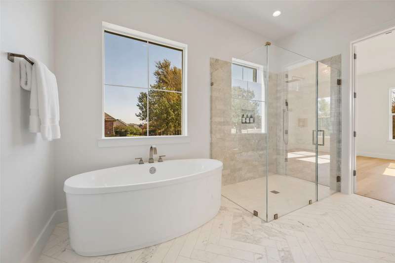Experience the perfect blend of European elegance and American comfort in this uniquely designed home, set on a rare, tree-lined lot. Crafted by a European designer with meticulous attention to detail, the interiors radiate harmony through light, earth-toned palettes, soft textures, and timeless finishes. French oak hardwood floors, Calacatta quartz countertops, and marble tiles complement premium lighting from Arhaus, West Elm, and Pottery Barn, while champagne bronze Delta fixtures add a refined touch throughout. The open-concept family floor plan is designed for modern living. Sun-drenched living spaces feature oversized windows framing serene views, a gas RealFlame fireplace, custom white oak shelving, and a statement chandelier, blending elegance with a warm, inviting ambiance. The oversized kitchen is a chefs dream: an oversized island with seating for eight, Calacatta Mia quartz countertops and backsplash, Bianco farmhouse sink, top-of-the-line KitchenAid appliances, and custom LED-lit cabinetry create a space thats as functional as it is beautiful. The primary suite is a private retreat with expansive views, walk-in closet, and a spa-inspired bath with a freestanding Roman tub, Bianco Carrara marble shower, double vanity, and matching high-end fixtures. Generously sized secondary bedrooms and baths, a thoughtfully designed laundry and mudroom, and custom storage elevate everyday living. Every detail of this homefrom spray foam insulation and tankless water heating to electric-car-charging preparationreflects sophisticated, thoughtful living. Outdoors, the home is prepared for a pool and outdoor kitchen, with lighting, landscaping, and a circular driveway enhancing its curb appeal. Located in an active, vibrant community with events like classic car exhibitions, dance parties, and festive celebrations, this home offers a lifestyle that seamlessly combines luxury, comfort, and connection.