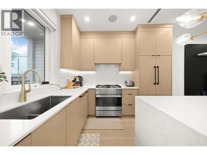 Built in 2024, this nearly new 1,774 sq.ft. side-by-side duplex showcases quality craftsmanship and thoughtful design. A flexible lower-level lock-off suite provides space for extended family or rental income. Inside, refined finishes set the tone - engineered hardwood flooring, quartz countertops, Fisher & Paykel appliances, a heat pump system, air conditioning, and a gas cooktop. The upper level offers three spacious bedrooms with access to a private deck through elegant French doors. Enjoy front and back yard spaces, an attached garage, and extra parking. Ideally located near Sunset Community Centre, shops, major transit, J.W. Sexsmith Elementary, and Sir Winston Churchill Secondary with French Immersion - this home captures the essence of modern South Vancouver living. (id:58403)