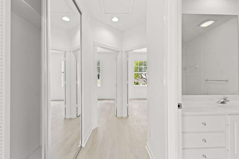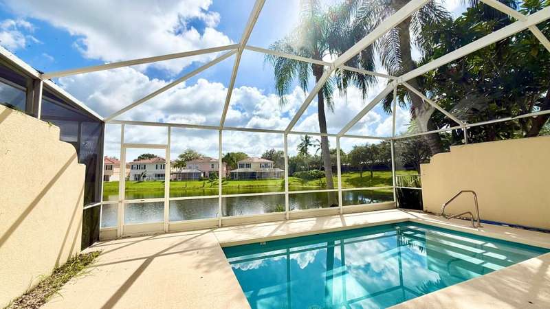 Beautifully maintained 3 bedroom, 2.5 bathroom townhome with 1-car garage in the highly desirable RiverWalk community. This bright and spacious home features brand new luxury vinyl plank flooring, fresh paint throughout, and a screened private pool overlooking the lake. The principal suite offers a large walk-in closet and an en-suite bathroom with dual sinks, soaking tub, and separate walk-in shower. Two guest bedrooms share a full bath, plus there is a convenient laundry room with full-size washer and dryer. Rent includes cable, internet, pool service, and access to all of RiverWalks resort-style amenities. Immaculate and move-in ready!